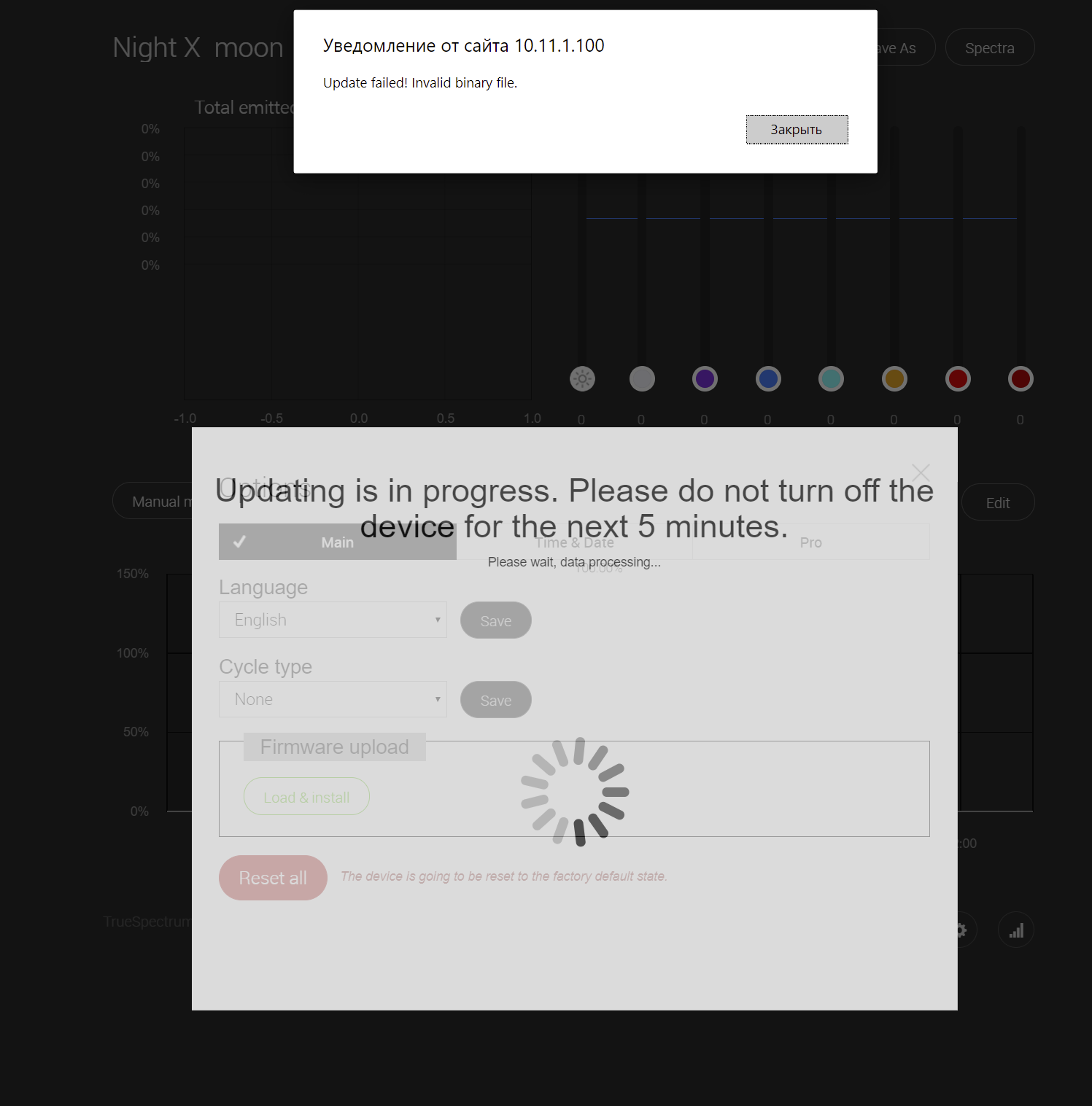 4. Исправлен баг, когда не было возможности установить точку спектра на суточном цикле точно на начало часа. Ранее при попытке поставить точку, к примеру. на 9:00, она ставилась на 9:01. Теперь можно ставить точно на 9:00.