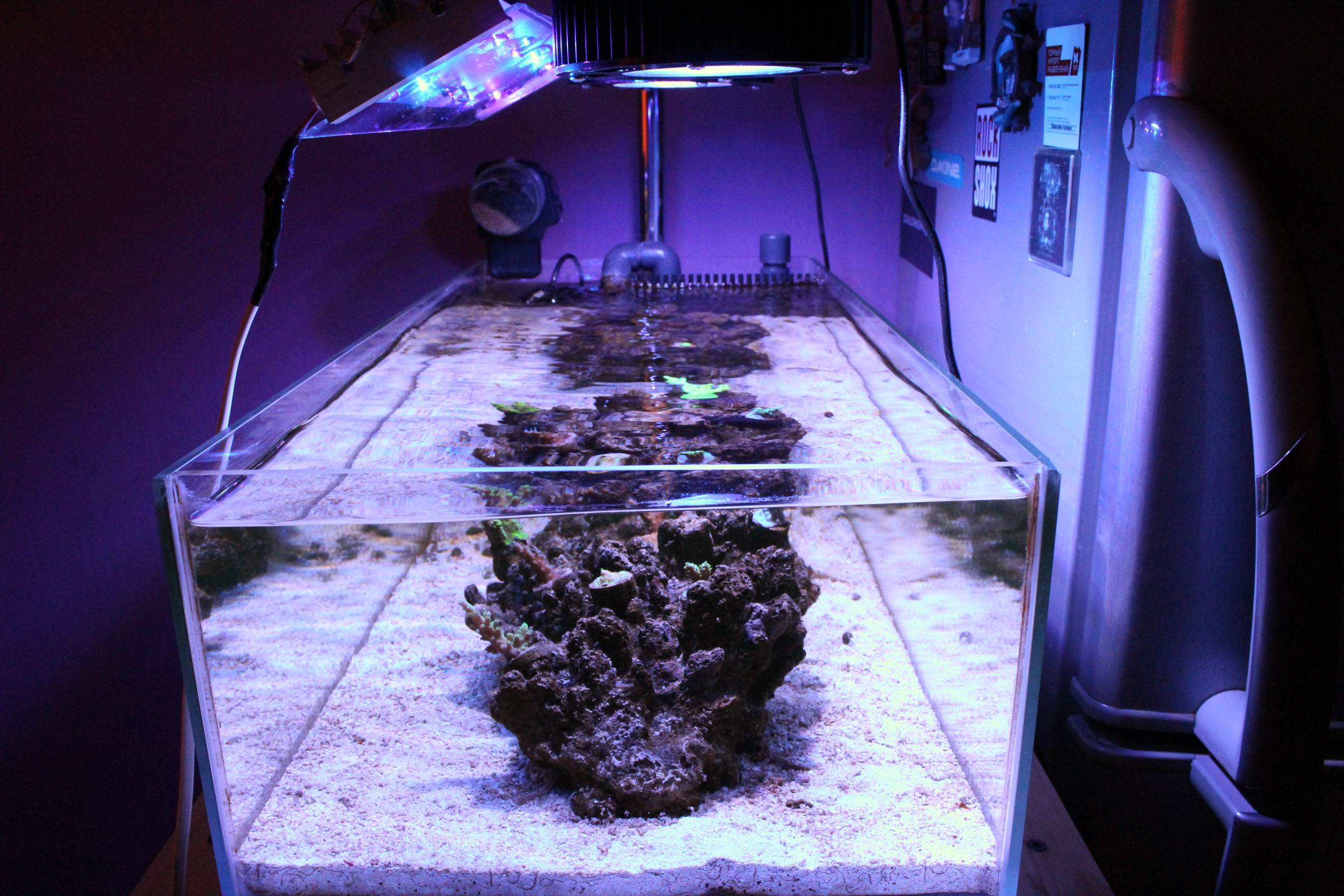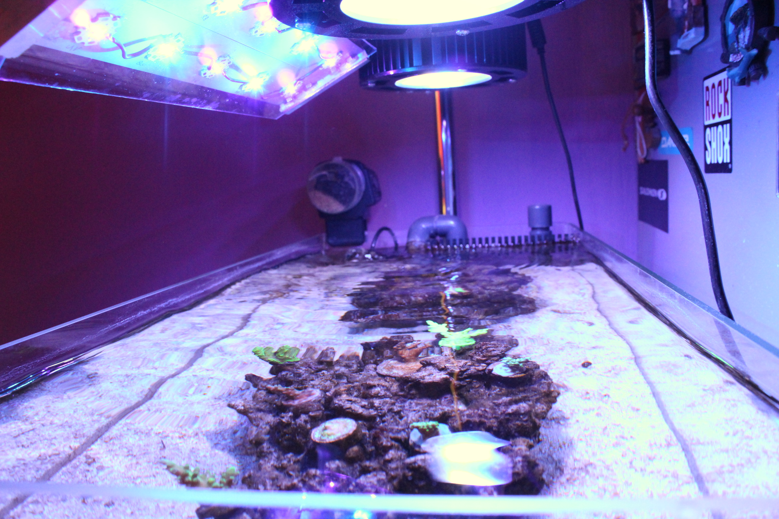 Начинаю понимать, что иметь успешную шурокую лагуну с жесткими кораллами с приоритетом наблюдения за аквариумом сверху- нужно несколько маленьких мощных линзованых светилей с высокой подвеской, ибо 4 т5 перекроют напроч всю банку )