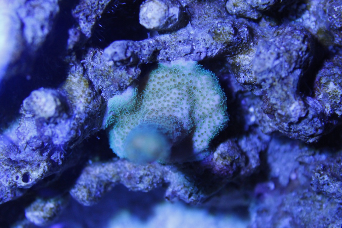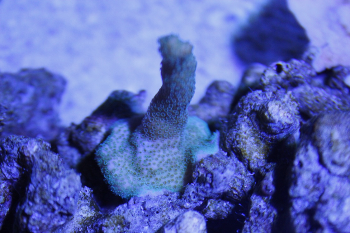 Отломил кусочек Porites jason fox и бросил в лужу на срк, выступающем из воды. За неделю поритес принялся в рост.