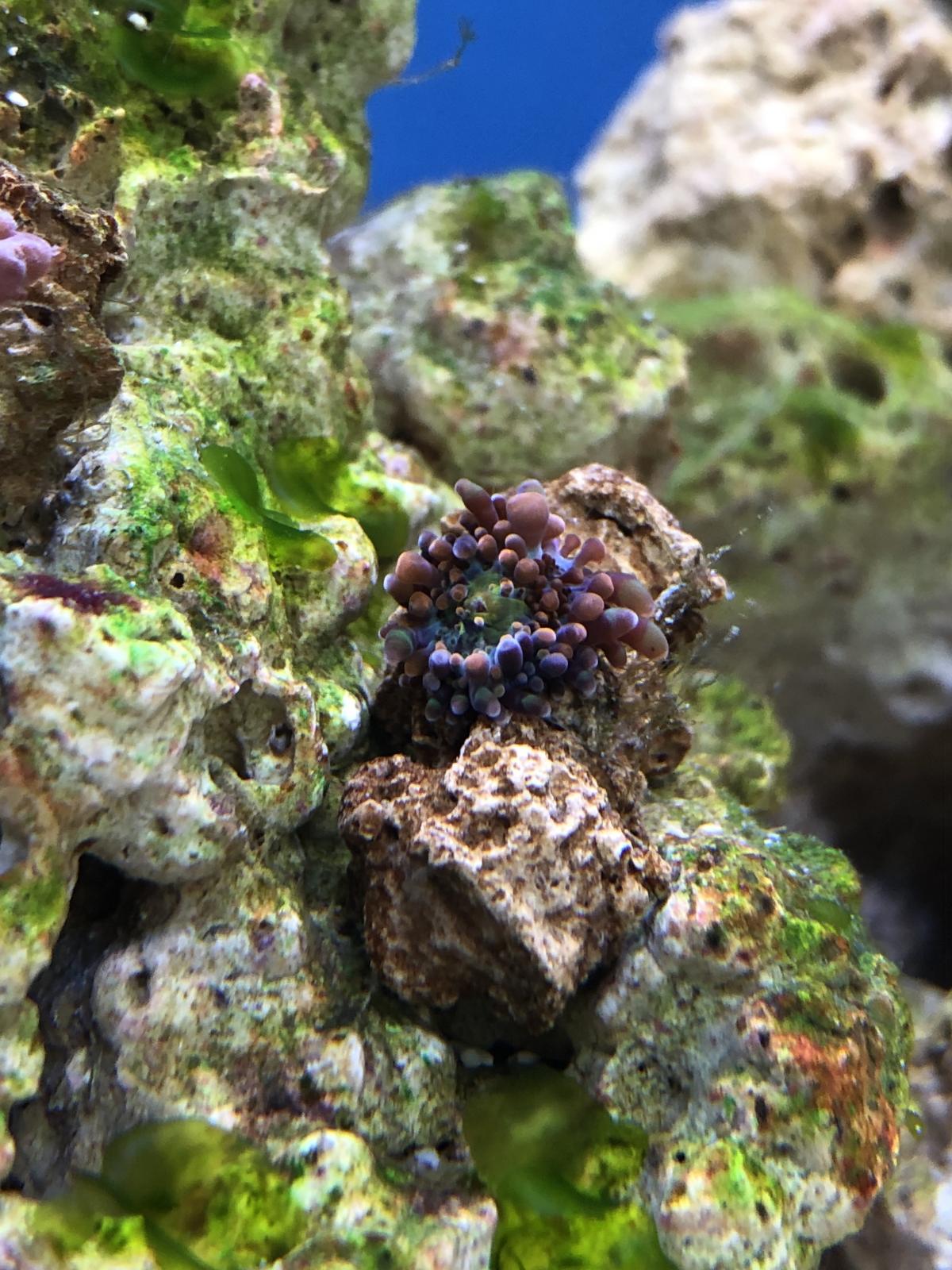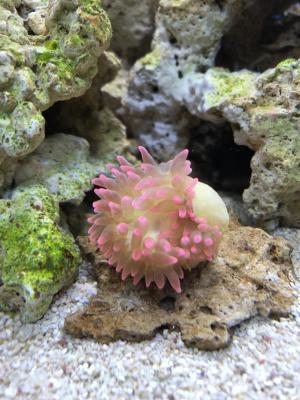 Может, место другое поискать плохо открывающемуся зонтику. Игл айз в разных источниках любят разные свет и течение - где-то пишут про то, что и то и другое должно быть сильным, где-то, от слабого до умеренного. У меня в аквариуме самые "жирные" полипы у этих зонтов в зарослях клавулярии. А вот те, что на камушки и плашку были пересажены из тех же зарослей, стали подозрительно мелкими