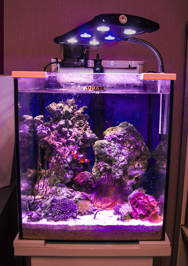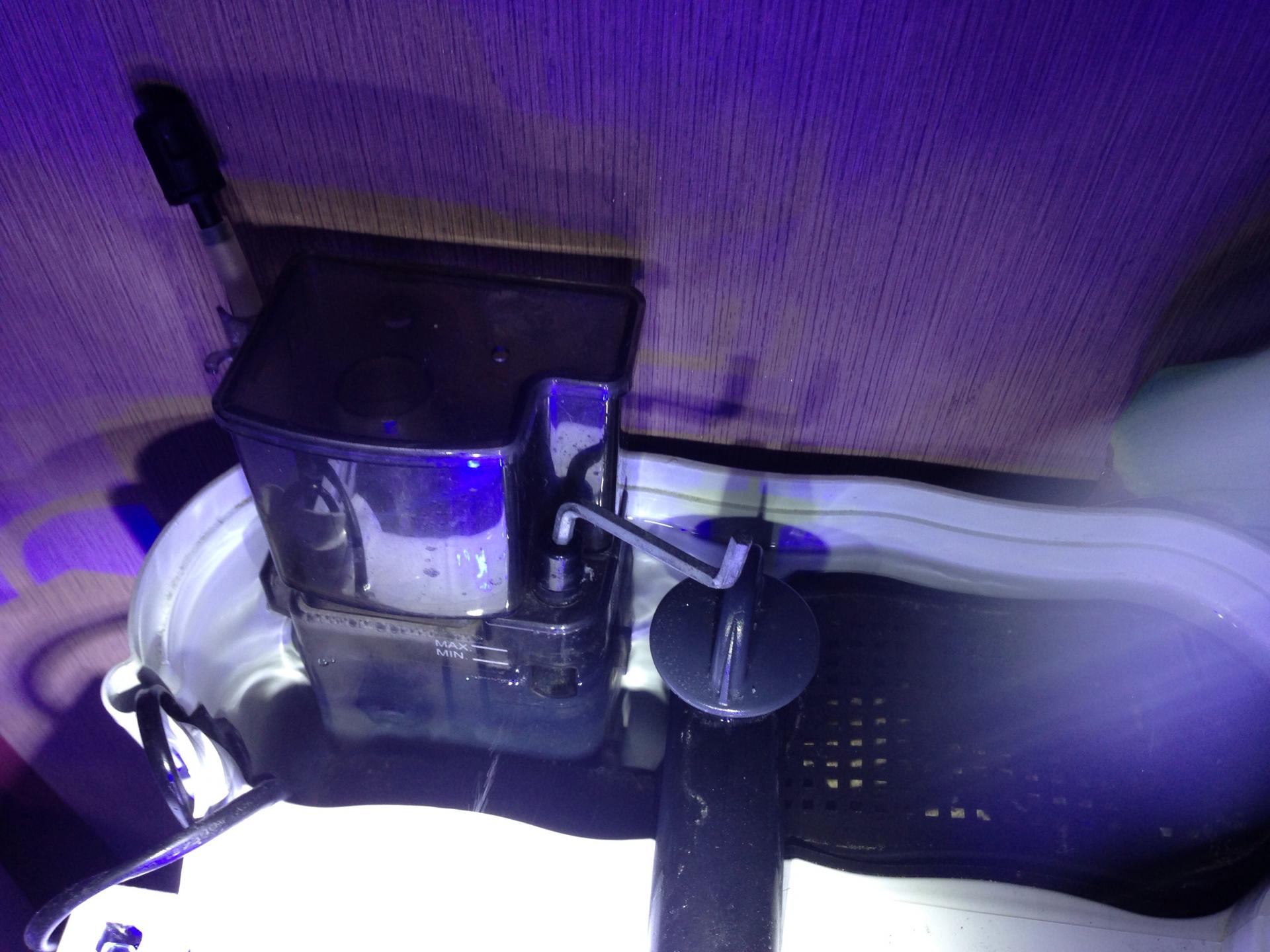 Добавила помпу Aquael reef 1200, прикрыла водозаборники крупным ломом ЖК и направила ее за камнями - течение стало более обширным и постоянным. Пенник ушел в рюкзак Aquael fzn-3, вто втором отсеке бой ЖК.