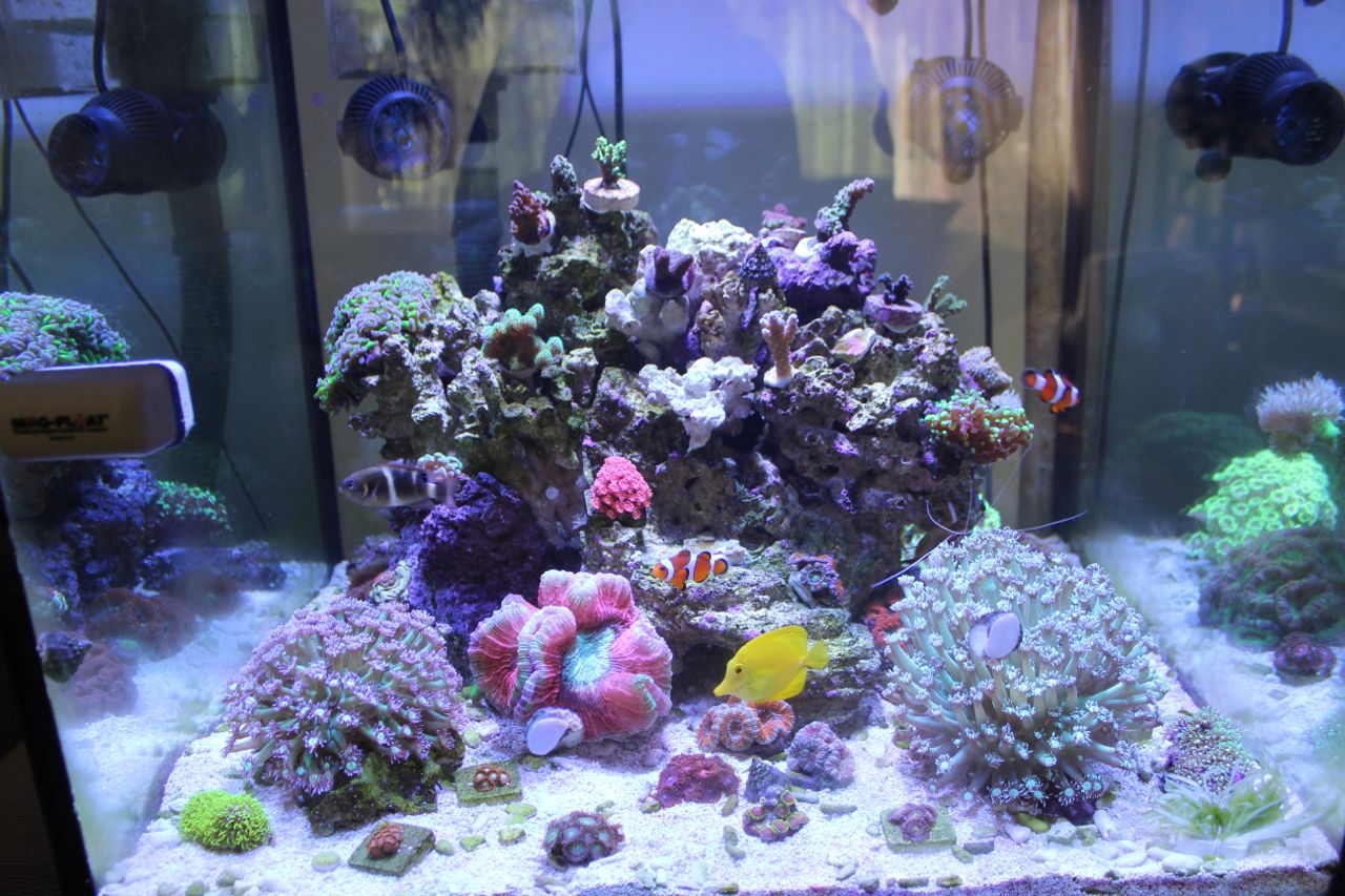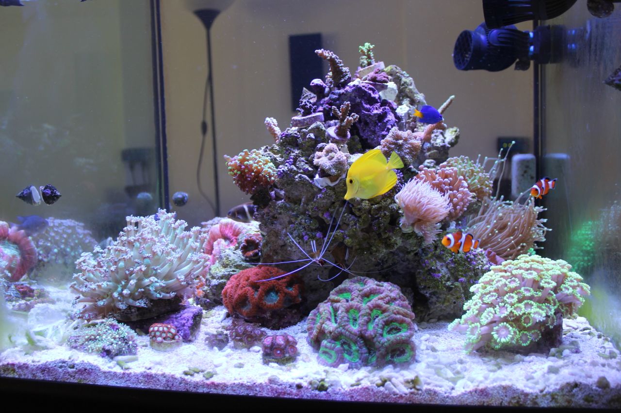 На фото мой первый морской аквариум. Ему два месяца, некоторые кораллы и рыбы и сейчас в моей системе. Кстати там свет был радион второго поколения.