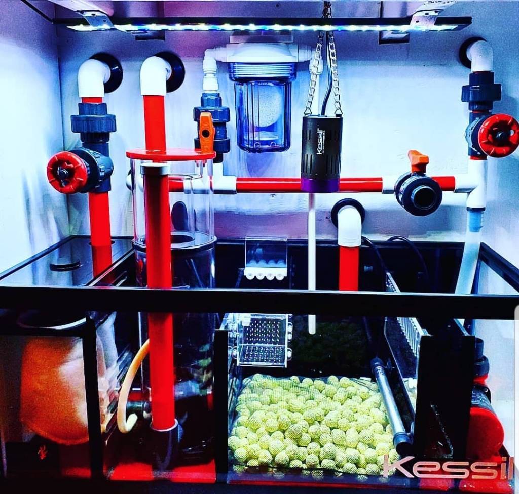 Принцип работы керамики похож на реактор пелет, так что эффективность будет больше перед скимером, ИМХО. А на фото самп без воды, просто для красоты в отдел водрослевика бросили керамику, чтоб пустым небыл.