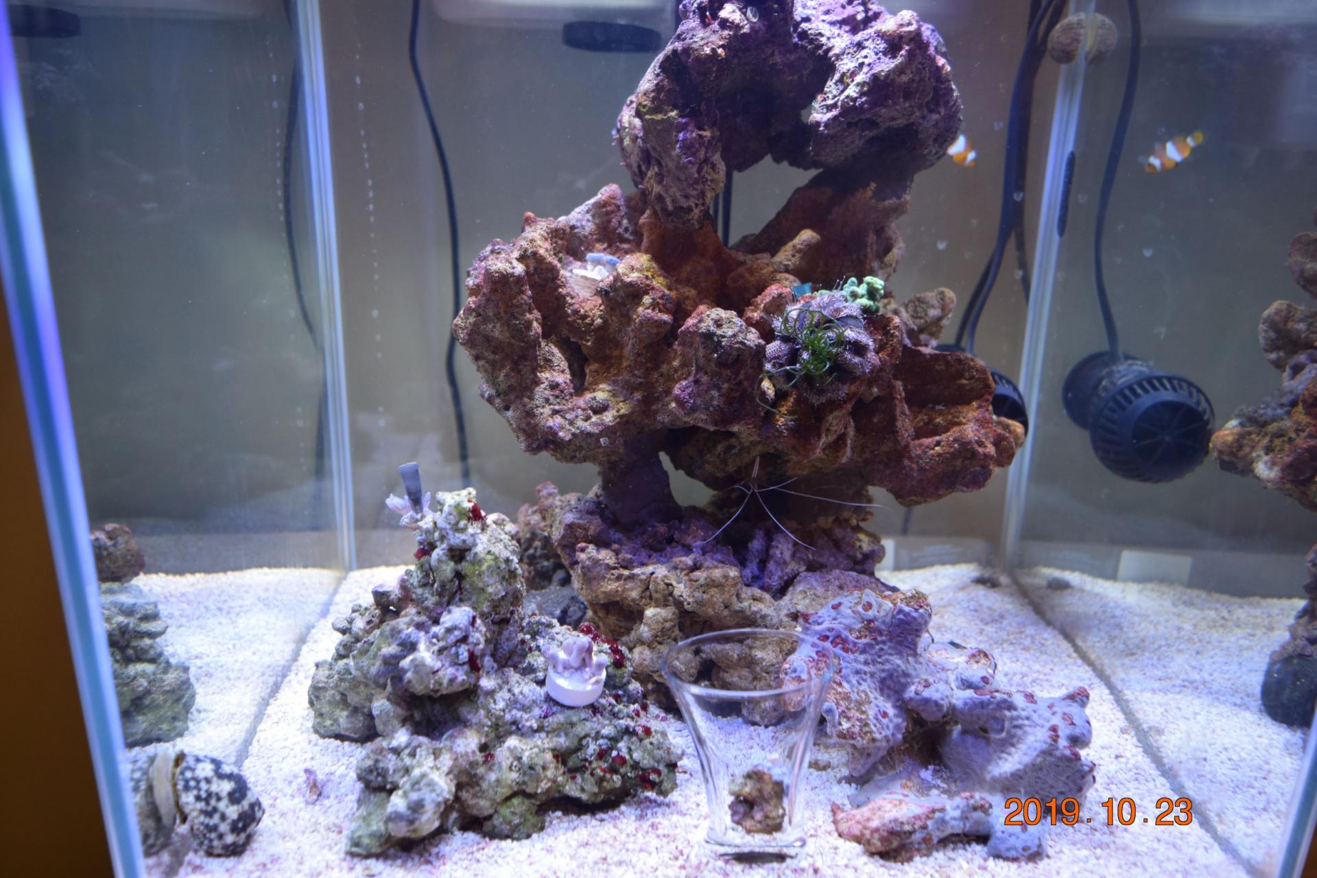 Синулярия в низ аквариума, если Корнулярия это маленькие синие цветочки то ее на отдельный камень в противном случае потом не избавитесь от нее