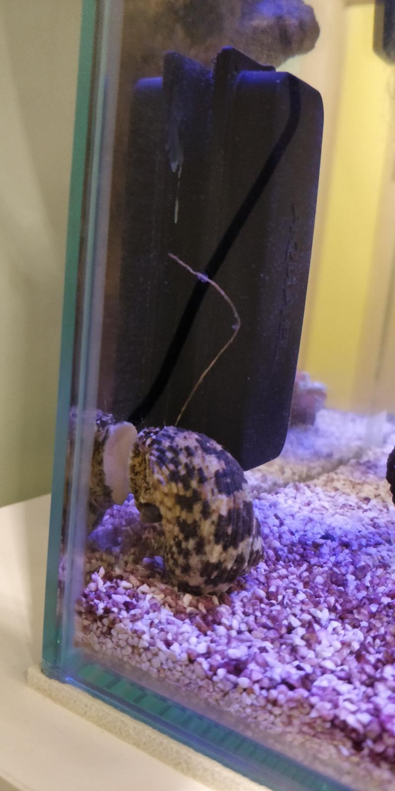 Это по моему водоросль, хета. Уберите ее просто аккуратно. А улитка если прилипшая к стеклу то скорее всего все в норме.