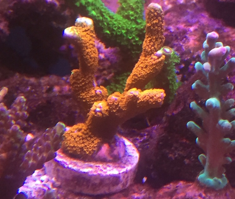 4. Акропора Green Bali Slimer большой фраг, около 7 см на плашке полностью заросшей юбкой - 2000р