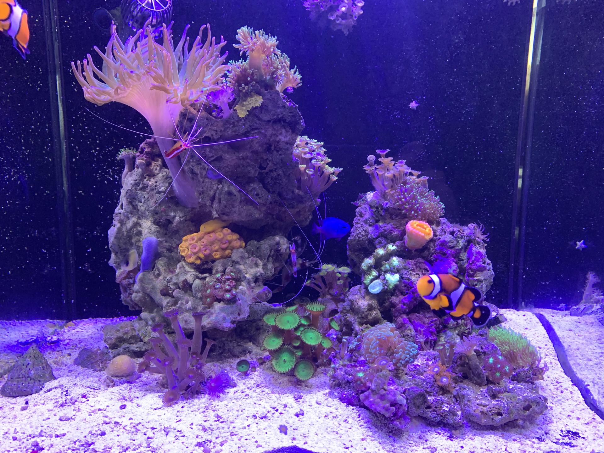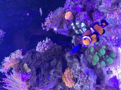 Мне кажется со светом проблема... Все как-то вытянуты.. Даже пузырчатая актиния какая-то не такая. Не претендую на авторитетное мнение, но если бы у меня была такая картина - в первую бы очередь посмотрел на свет. Его недостаток