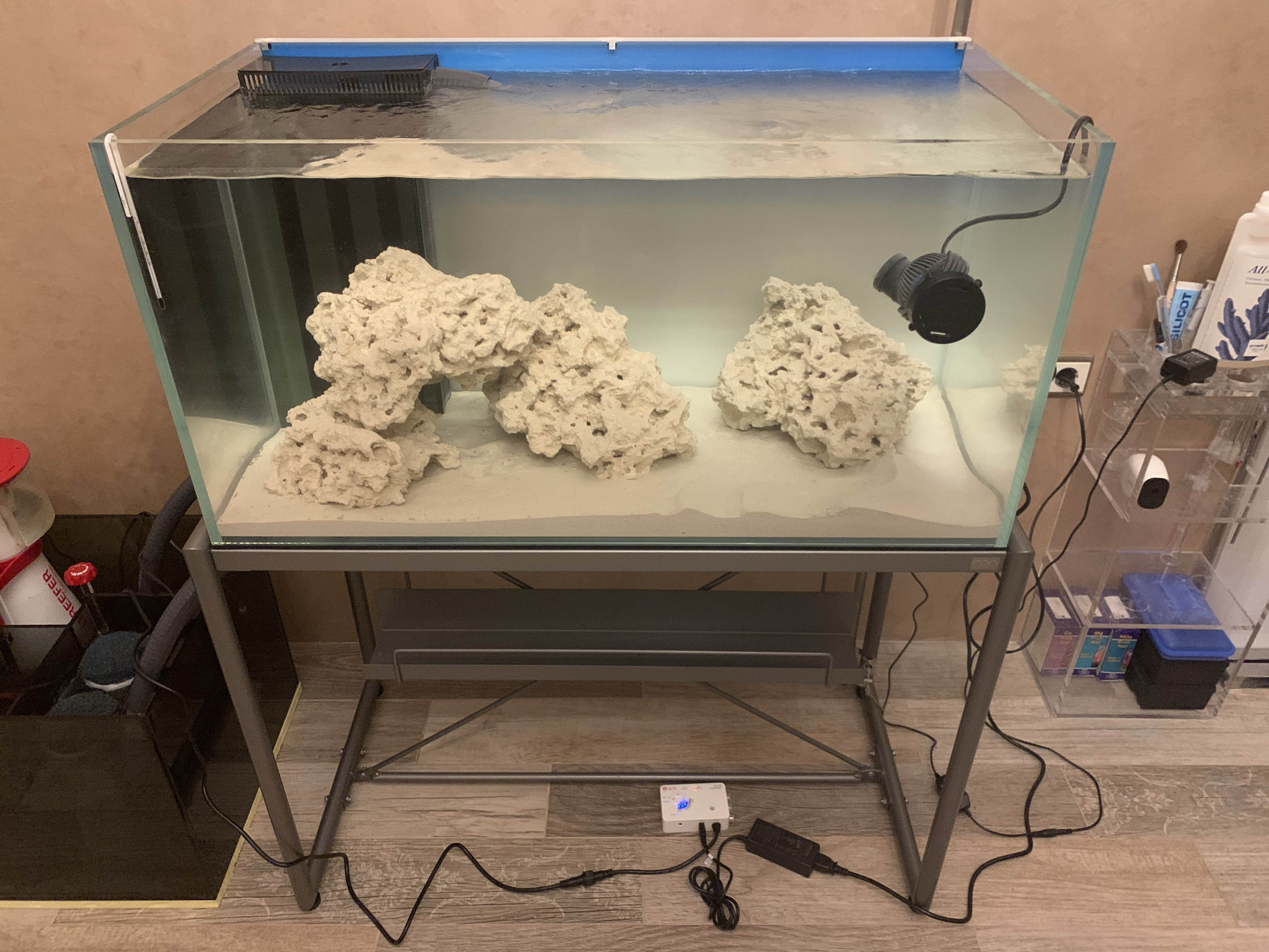 Но щас решил бомбануть с полупрозрачной пленкой с градиентом АДА и подсветкой... идея такая чтоб белый песок переходил в белую стенку и сверху заканчивался голубым - эффект удаляющейся перспективы морского дна) я доволен)