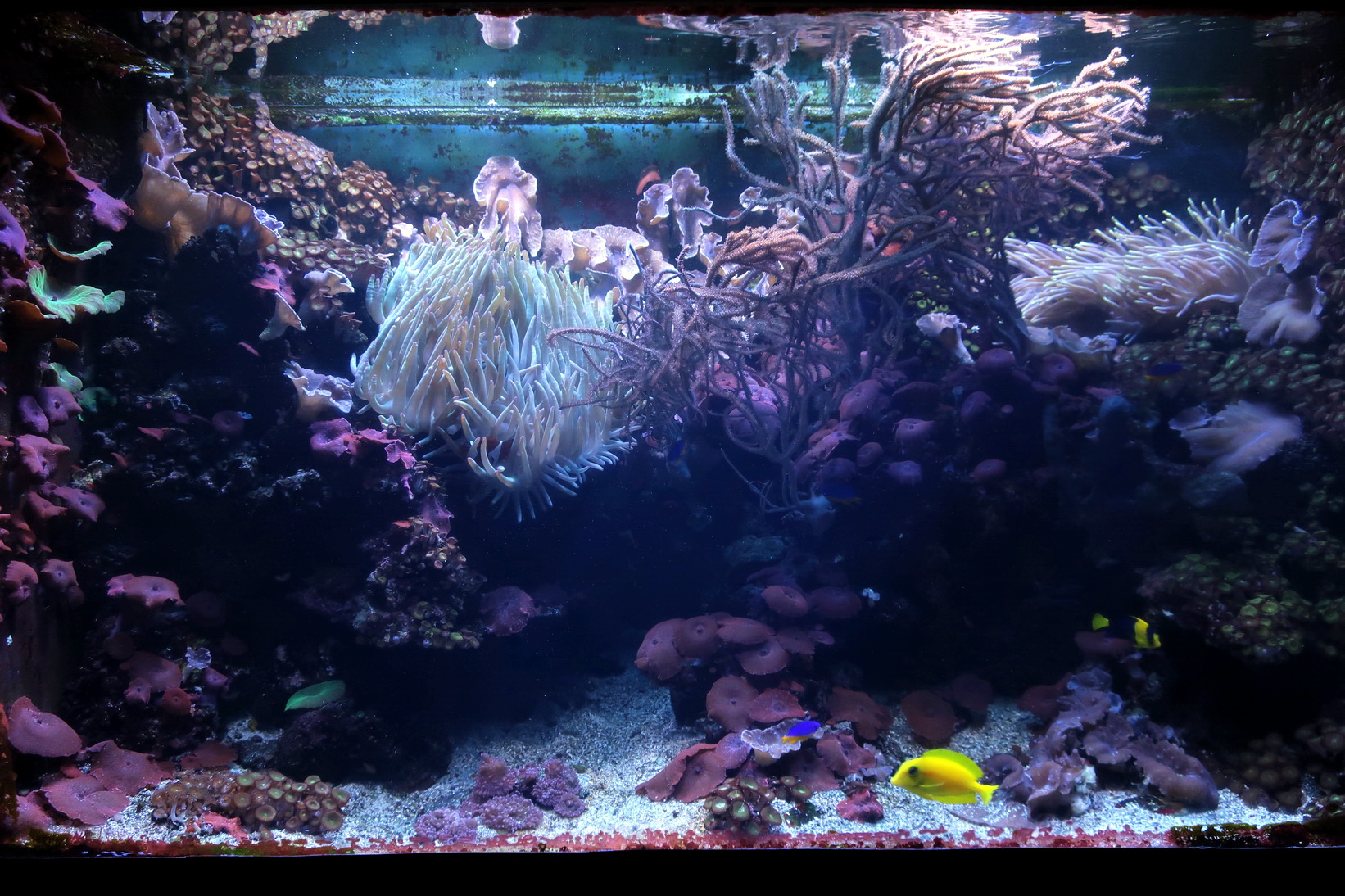 • Аквариум с DSB из мелкого арагонитового песка высотой около 10 см, примерно 70 кг живых камней и некоторое количество старых коралловых скелетов.