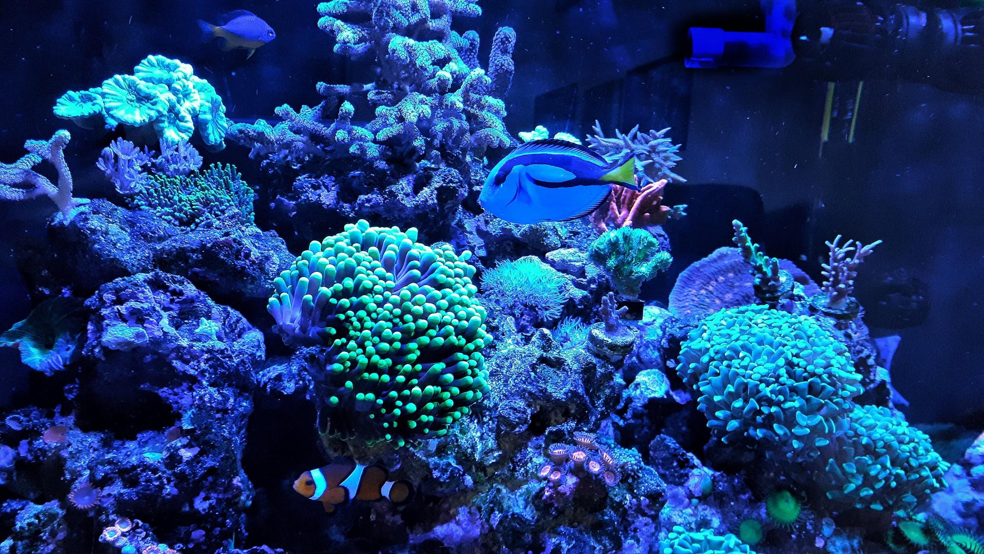 Банка не под хепатуса, 150 л, но это временно. Скоро переезд. Система функционирует почти 8 месяцев. Крипта не было до этого. Из старого населения клоун перкула, биспиноза, хриза, фломастер (не могу поймать их, собаки такие, но скорее всего поедут в новую банку), собакен и креветка доктор.