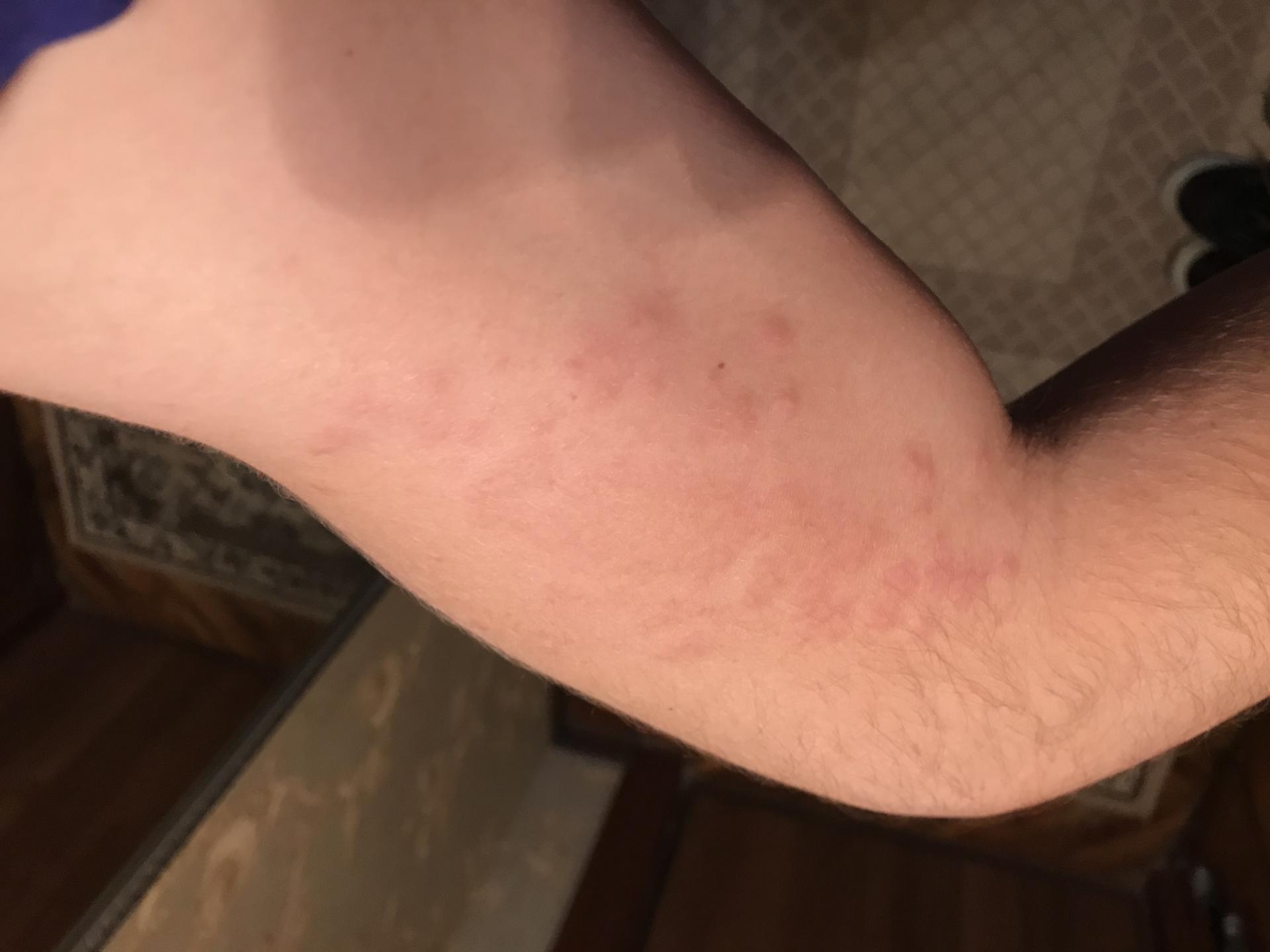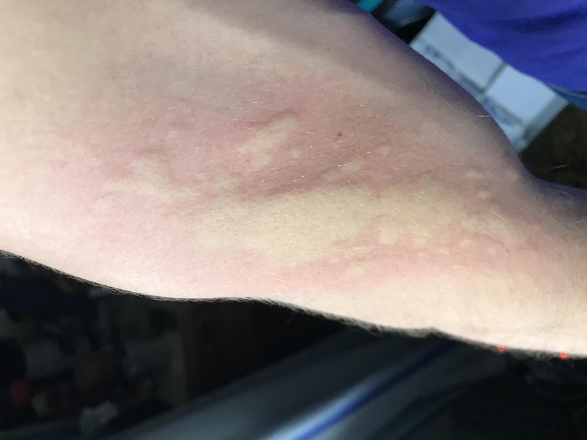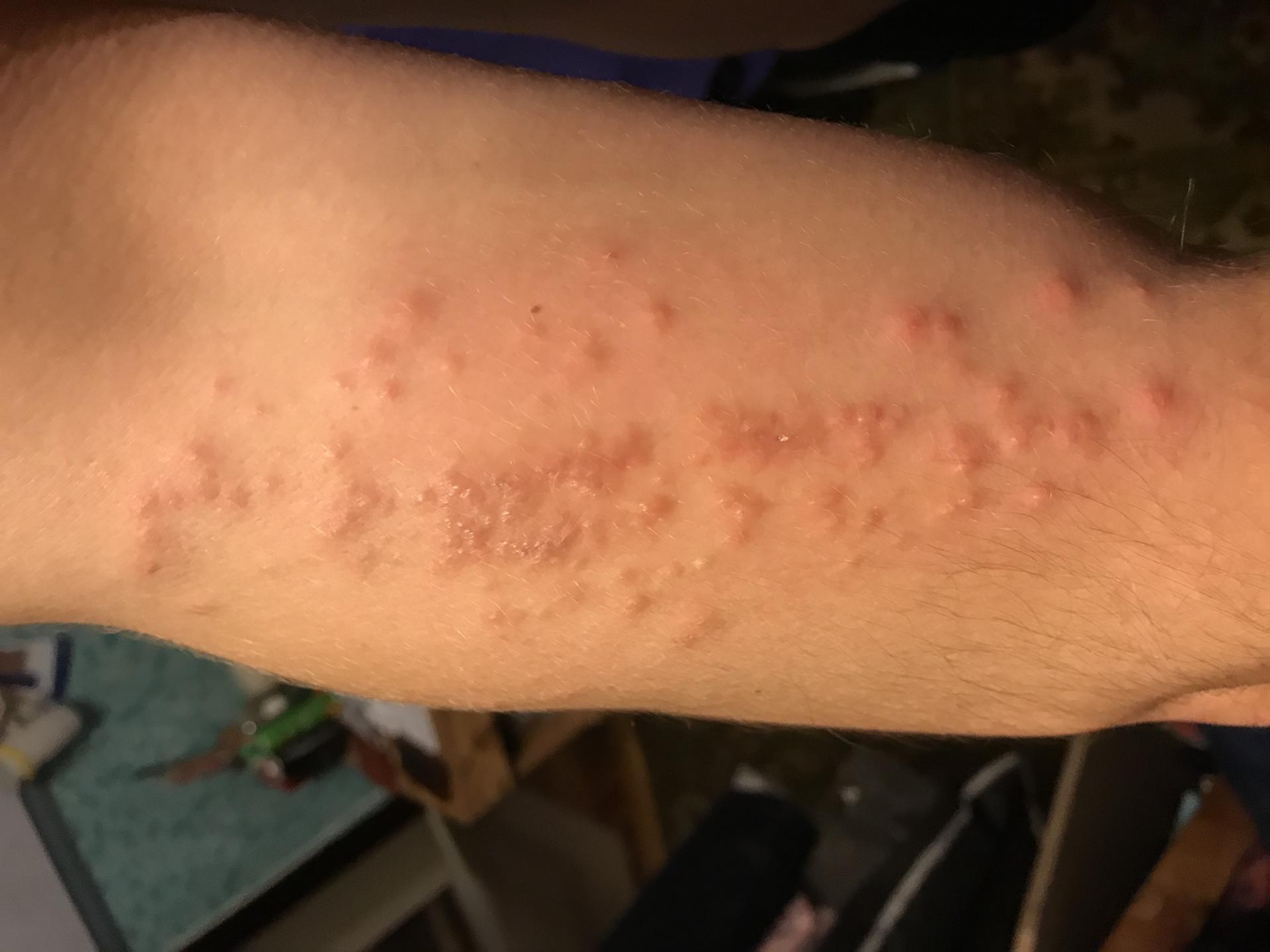 Через 10 минут на предплечье появилась покраснение ещё через несколько минут привились волдыри опухоли росла все шире