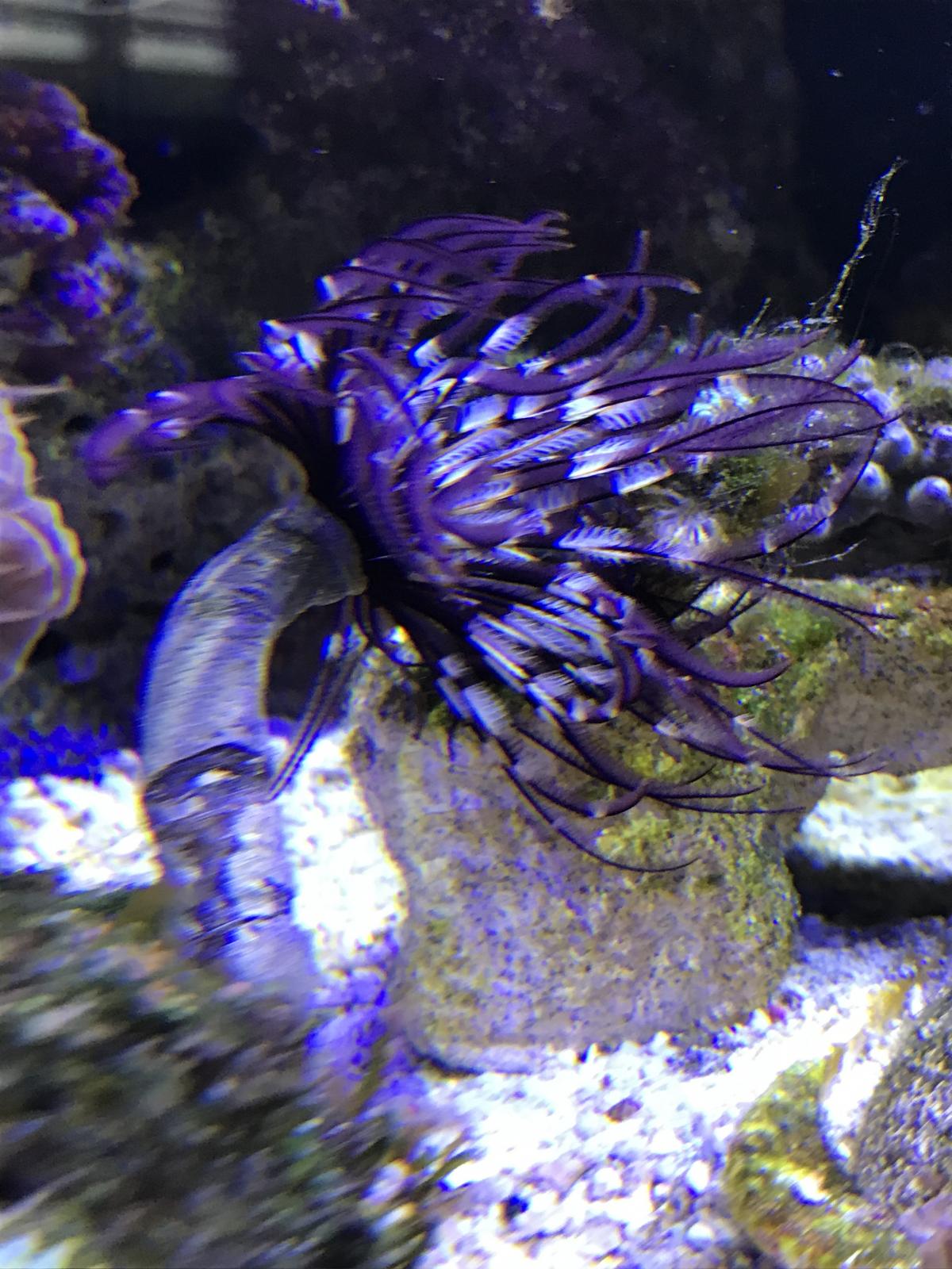Здравствуйте, форумчане! Может кто знает, как веерного червя в мягкой трубке (довольно крупный - размах веера 5-6см) вытащить из камня? Сидит так неудачно, его практически не видно за камнем, хочу пересадить. Пробовала повертеть, потянуть, но нет, трубка наверно быстрее порвется. Где он там в своей трубке - в самом низу? Можно ли его резко потянуть, когда веер распущен, может он поднимается кверху? Если я оторву большую часть трубки, он там будет разорван?