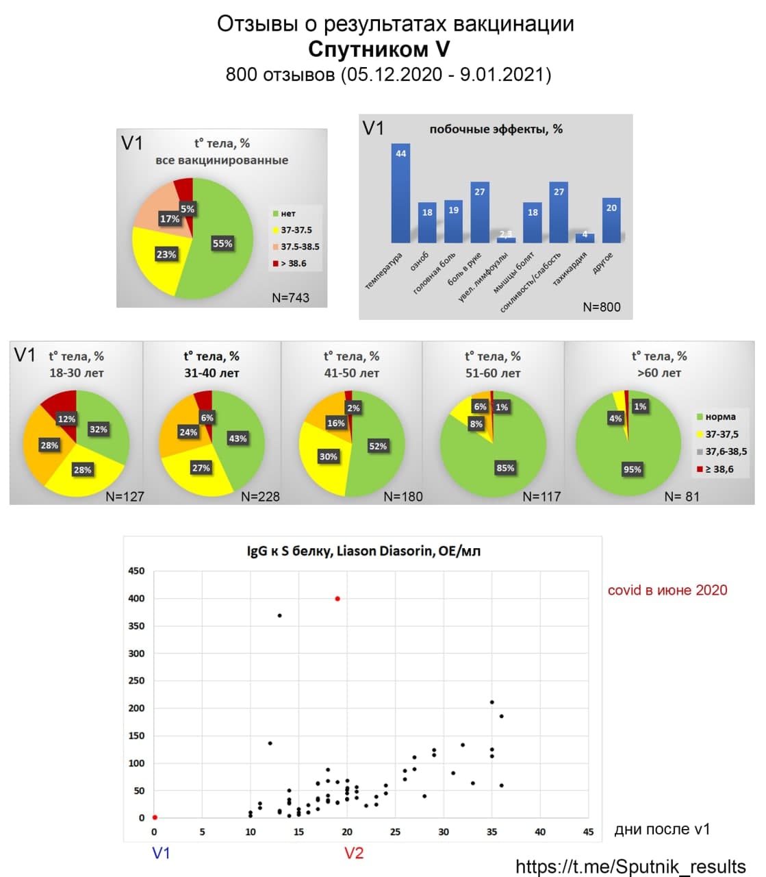 Из интересного мне - даны сроки формирования иммунитета после первой дозы; подтверждено, что иммунитет от вакцинации сильнее, чем у переболевших; подтверждено, что у старших возрастов от вакцинации иммунитет развивается такой же, как и у молодых (по факту цифра даже чуть выше); побочек и серьезных аллергических реакций в разы меньше чем у файзера и модерны. Почему так вполне понятно: у файзера и модерны полиэтиленгликоль в составе, многие на него плохо реагируют, плюс на большое количество введенной свободной РНК организм реагирует как на опасность запуская воспалительную реакцию. Отрицательная же реакция на Спутник другого рода - гриппоподобное состояние как результат реакции на аденовирусные оболочки.