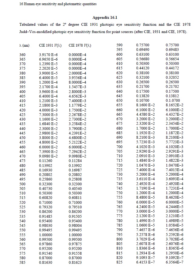 Для обычного китайского люксметра эта таблица неприменима, потому что он на самом деле измеряет PAR в синей и зеленой частях спектра, а в люксах у него просто шкала, в расчете на то что им только естественный свет и будут мерять.