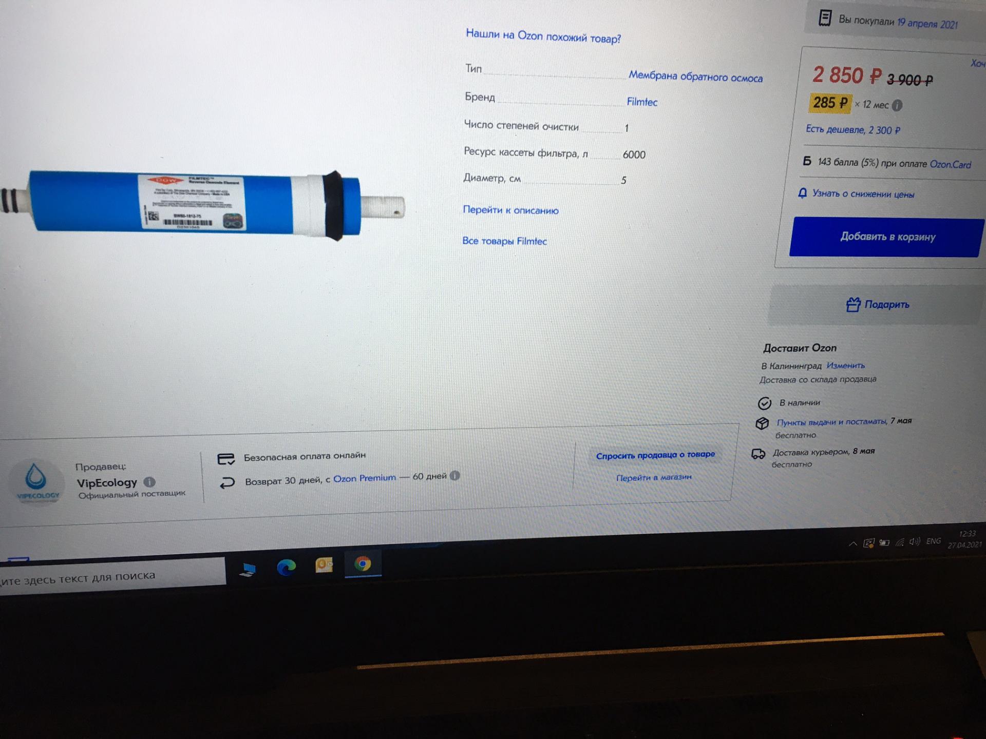 Только что заказал на Озон Filmtec, похоже подделка, ТДС = 11