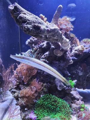 Друзья, давеча я завладел в Арчерфиш очень классной, по моему мнению, рыбкой. Губаном сигарой! Длина где-то 15 сантиметров. Я о таком до этого ни разу не слышал. В арчере сказали, что они в первый раз вообще получили такую рыбу, мы вместе гуглили, но толком ничего не нагуглили. Что я понял для себя: рыбёха мирная, но очень активная, патрулирует акву как щука. Жрёт как не в себя, два раза в день по кубу артемии, аж пинцет звенит. Под вечер может как бульдозер взрыть песок на дне мордой (некритично), а по ночам закапывается спать. Я, если честно, кайфую от нее, но на форуме упоминаний не встретил. Как и в интернете в целом.)) Может был у кого-то опыт содержания такой рыбёхи? Что можете сказать про неё?