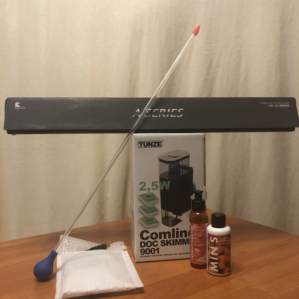 Утомительно ожидание подошло к концу и курьер привез оставшиеся оборудование из aquamagaz.ru (отдельное спасибо менеджеру, что отговорил меня от пенника AquaMedic и рассказал про фирму Tunze).