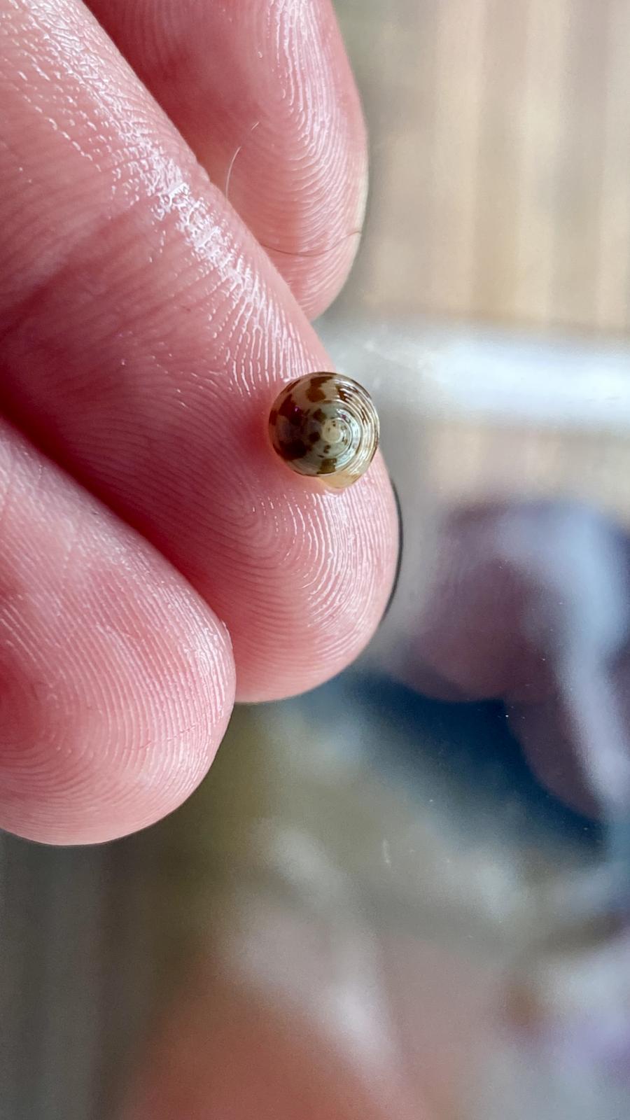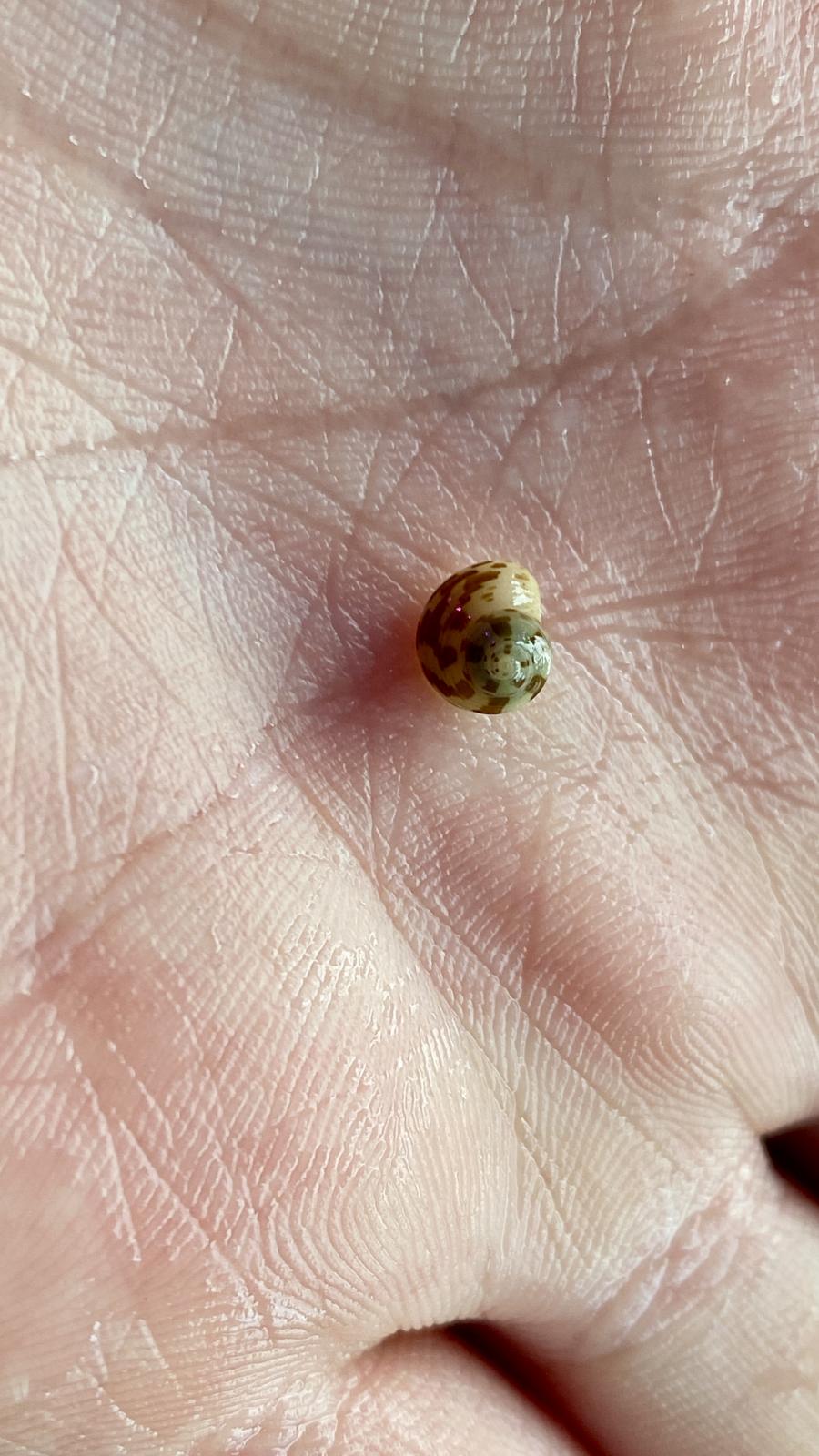 Мелкие улиточки в коричневую крапинку, спирально закрученные, форму пирамидки, как у трохусов, не видно.