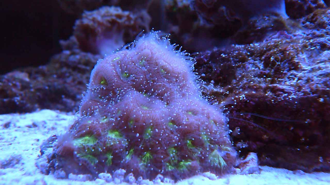 Здравствуйте. Целенаправленно не кормлю. В корм которым я кормлю рыб (делаю сам) добавляю сразу корм для кораллов, фильтровальщиков. После выключения света кормлю зоотоном от ТМ, тоже всех сразу.
