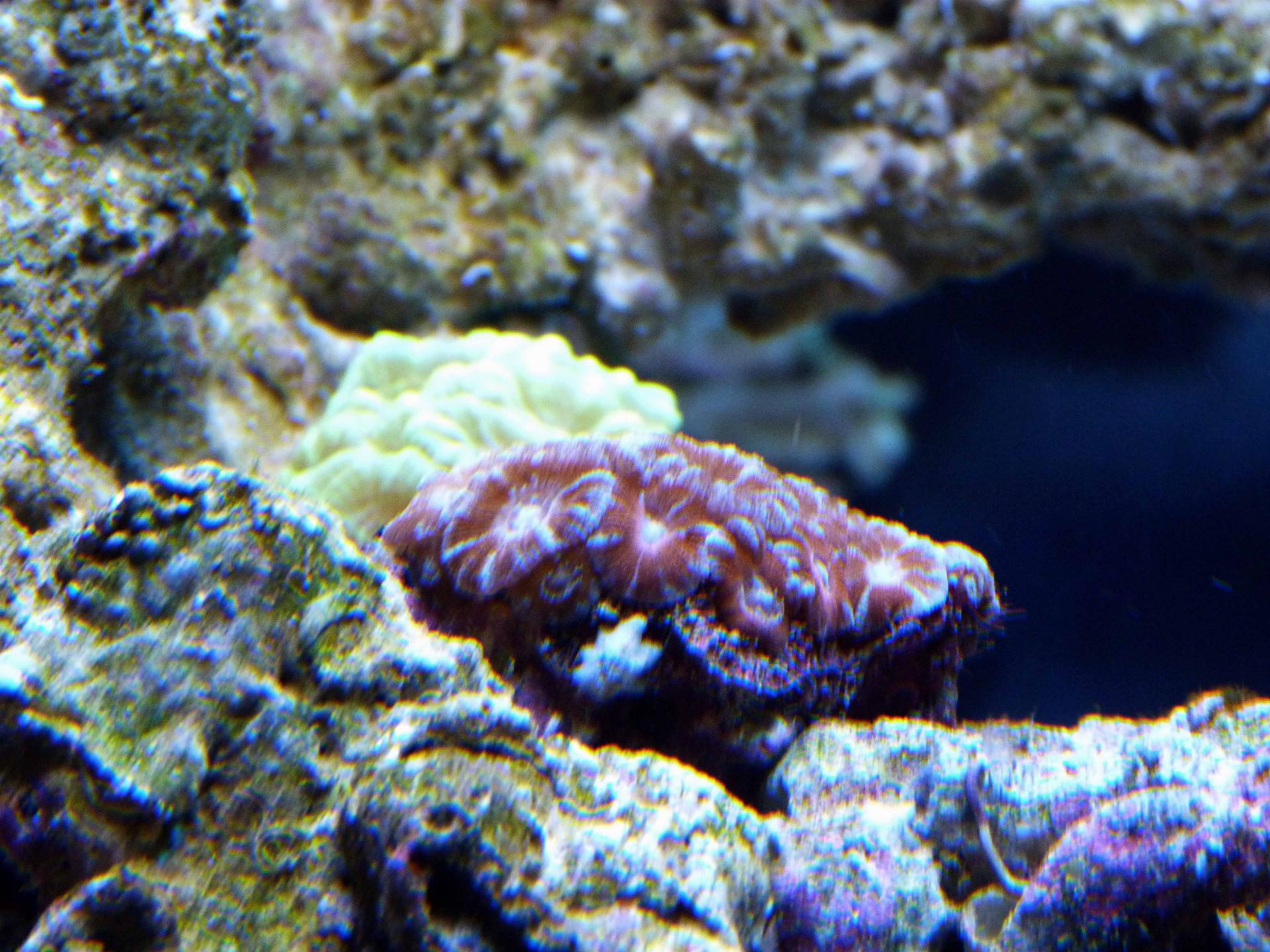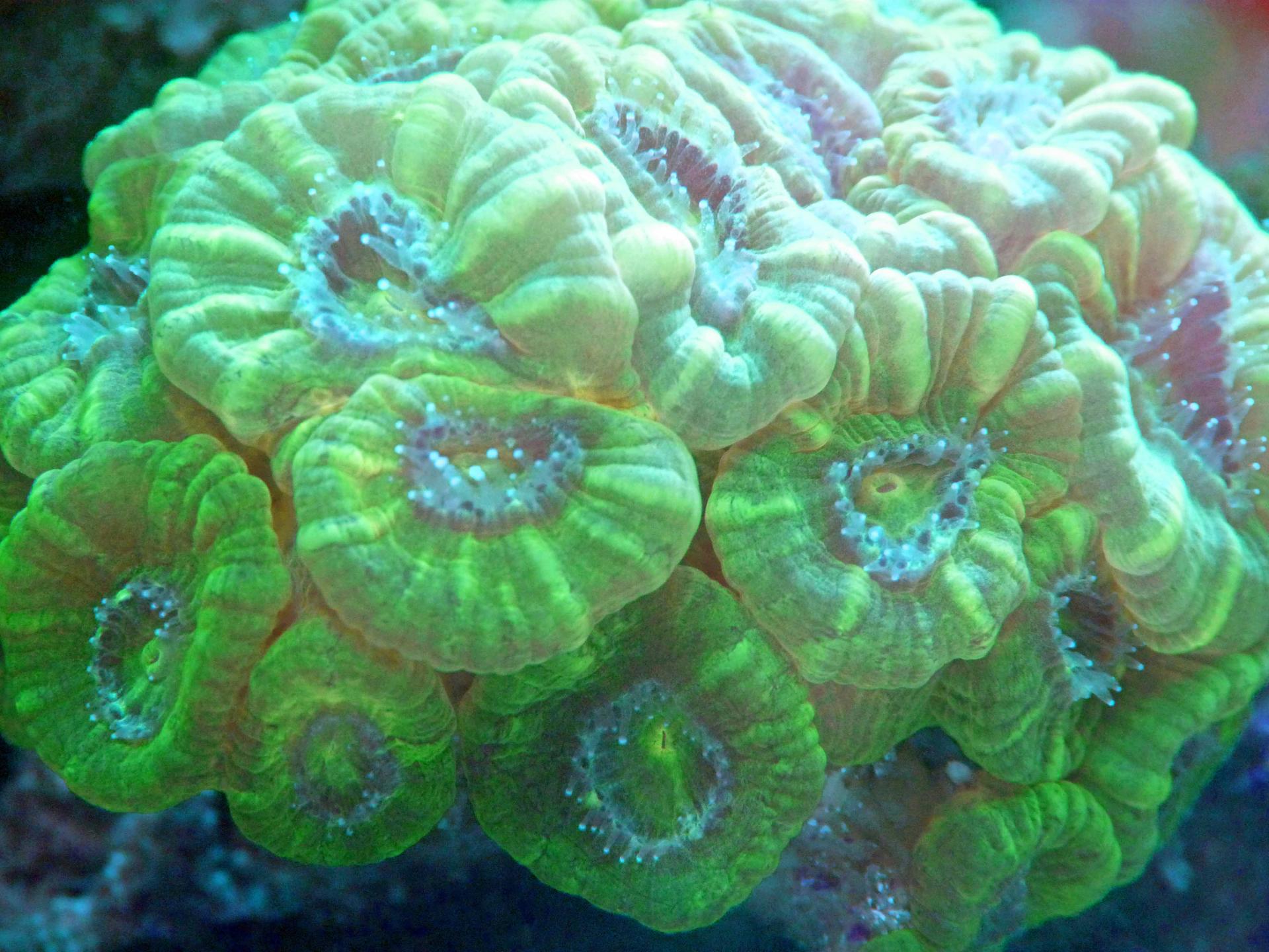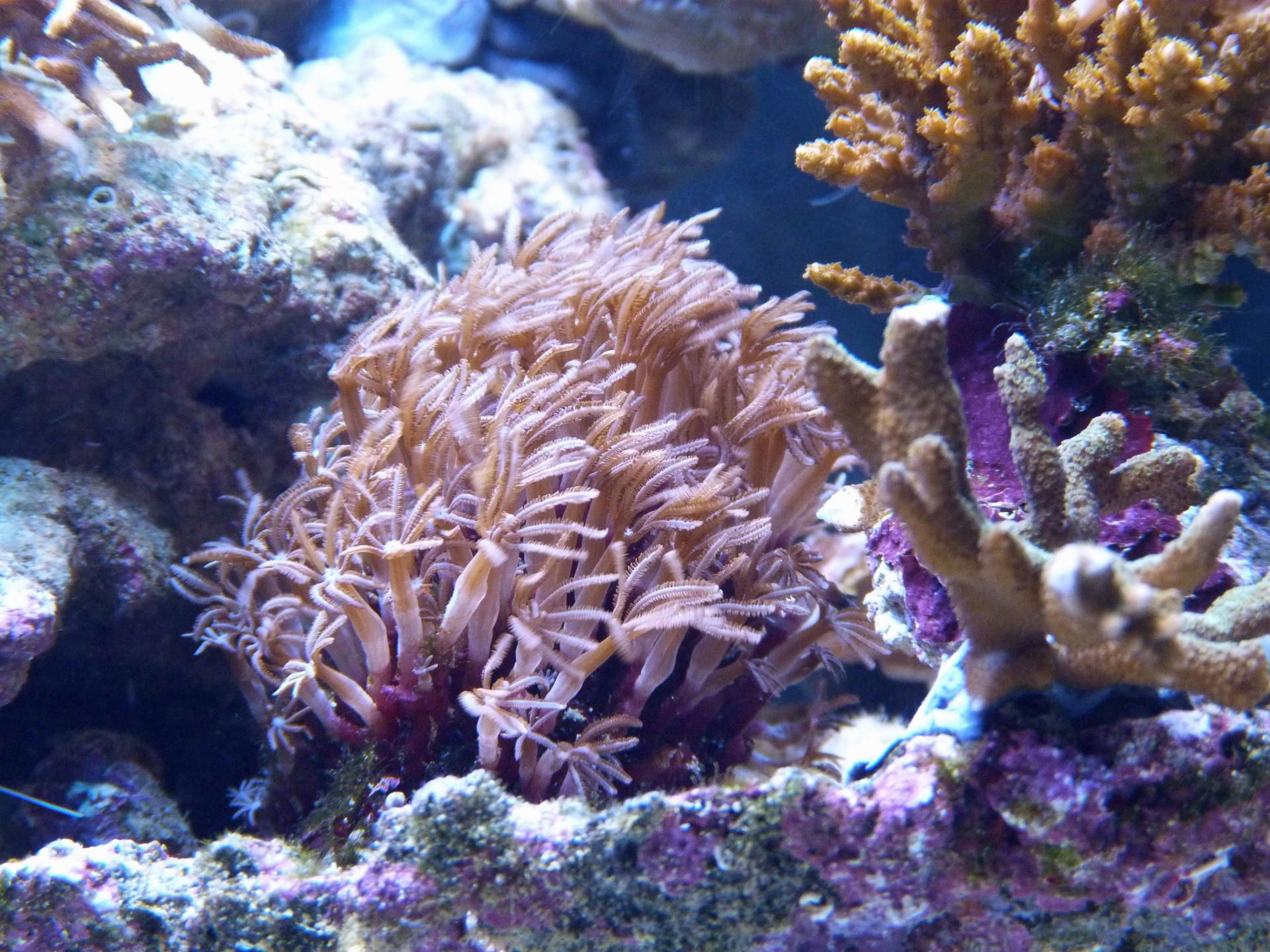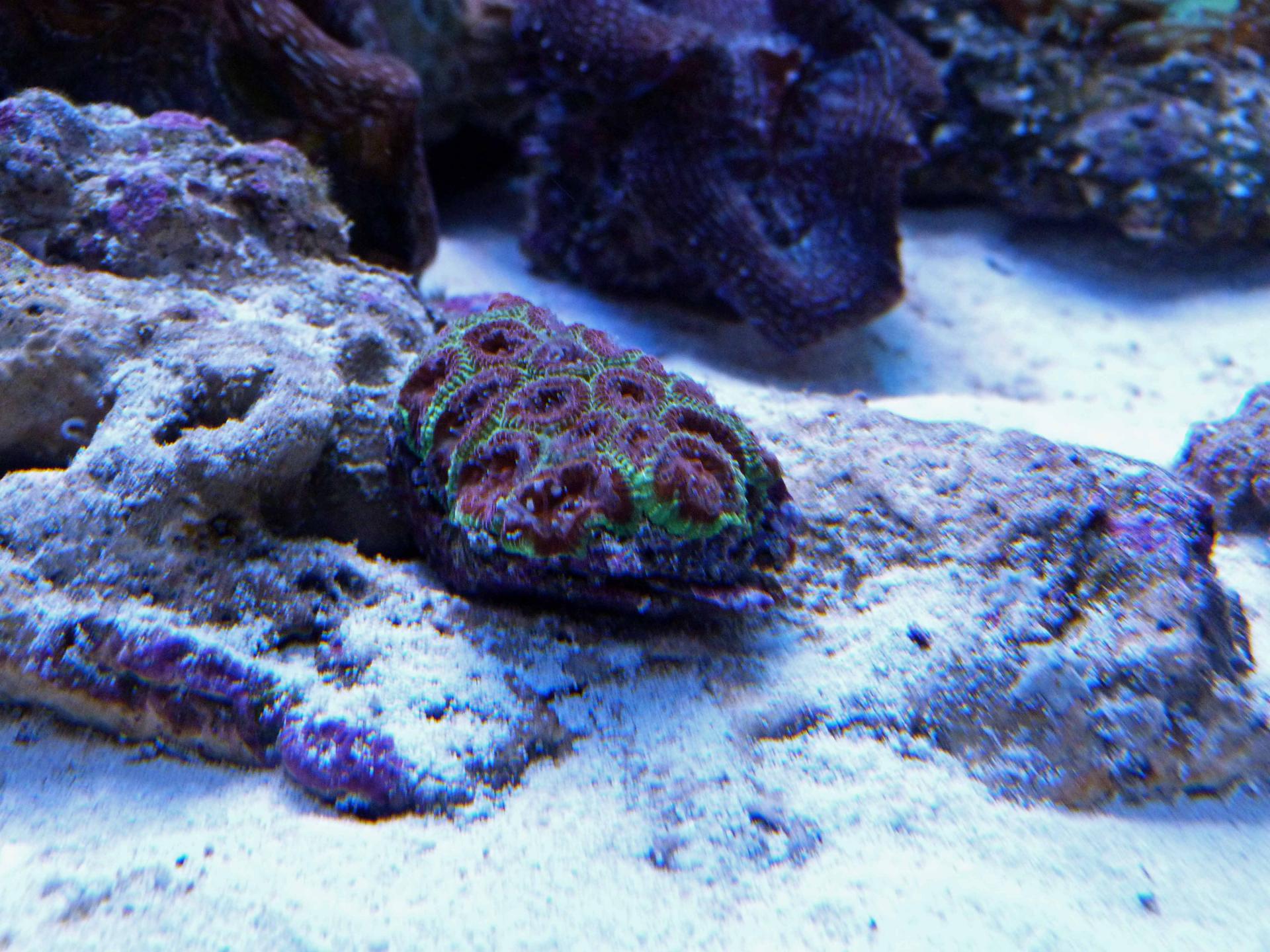 Это последнее приобретение: цериантус. Пока еще не совсем освоился. На фотографии конечно мне не добиться реальной красоты. Он глубокого черного цвета с еле заметным фиолетовым оттенком и яркой зеленой флюоресцирующей серединкой. Оочень контрастно.