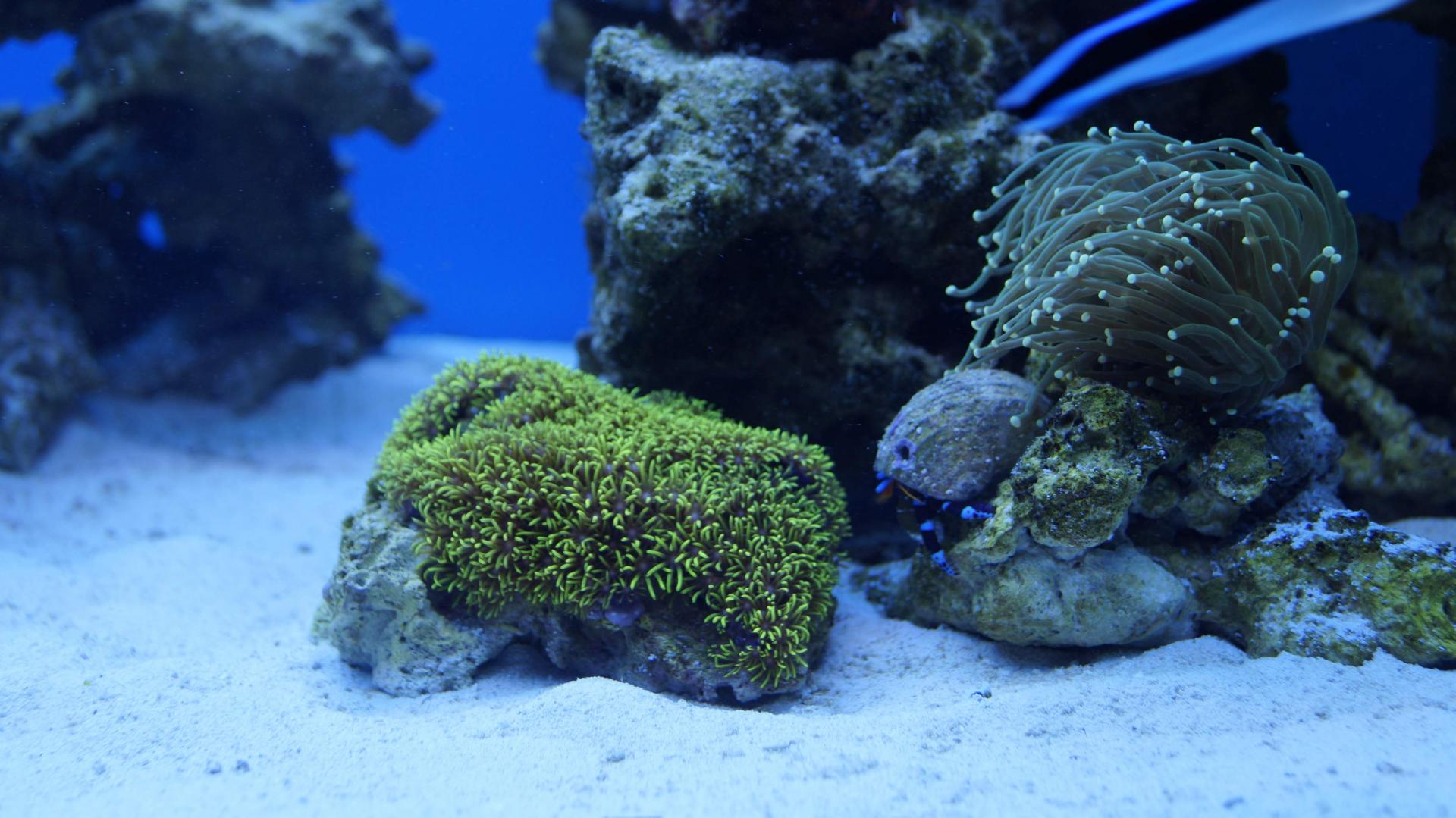 Первое: появились новые жители - три эуфелии, пять разных зонтиков, рак отшельник, улитка волчок, рикордия флорида зеленая. Все гидробионты чувствуют себя вроде бы нормально.