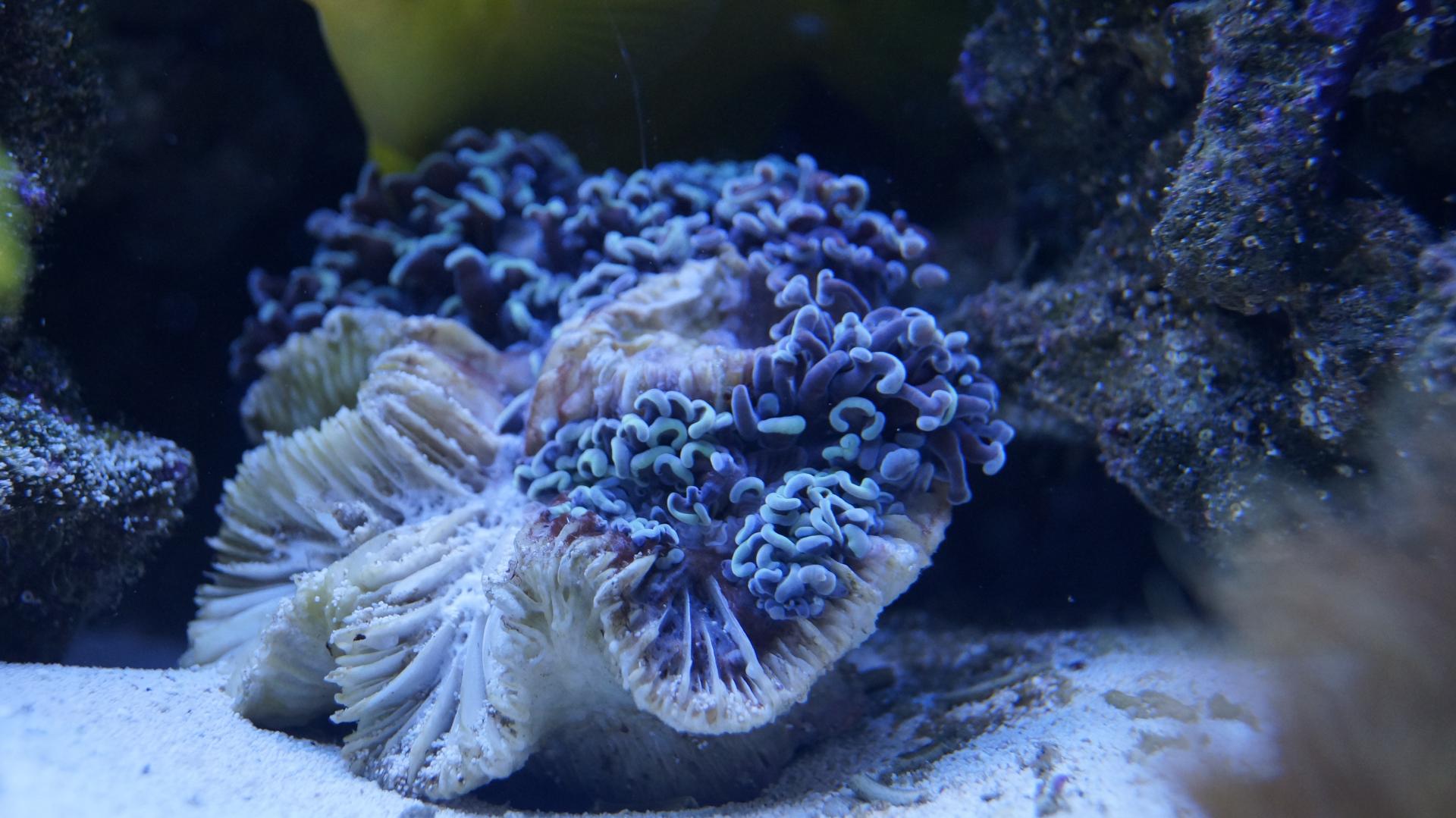 Здравствуйте, Павел! Насчет кормления- она фотосинтетик. Может быть её нужно отдельно подкармливать? Тогда не знал и чем? Эуфелия пришла с Риф шопа, Игорь говорит, что это от течения сильного и много света. Я ею убрал вниз, с камней. Бурого желе на ней вроде бы нет.