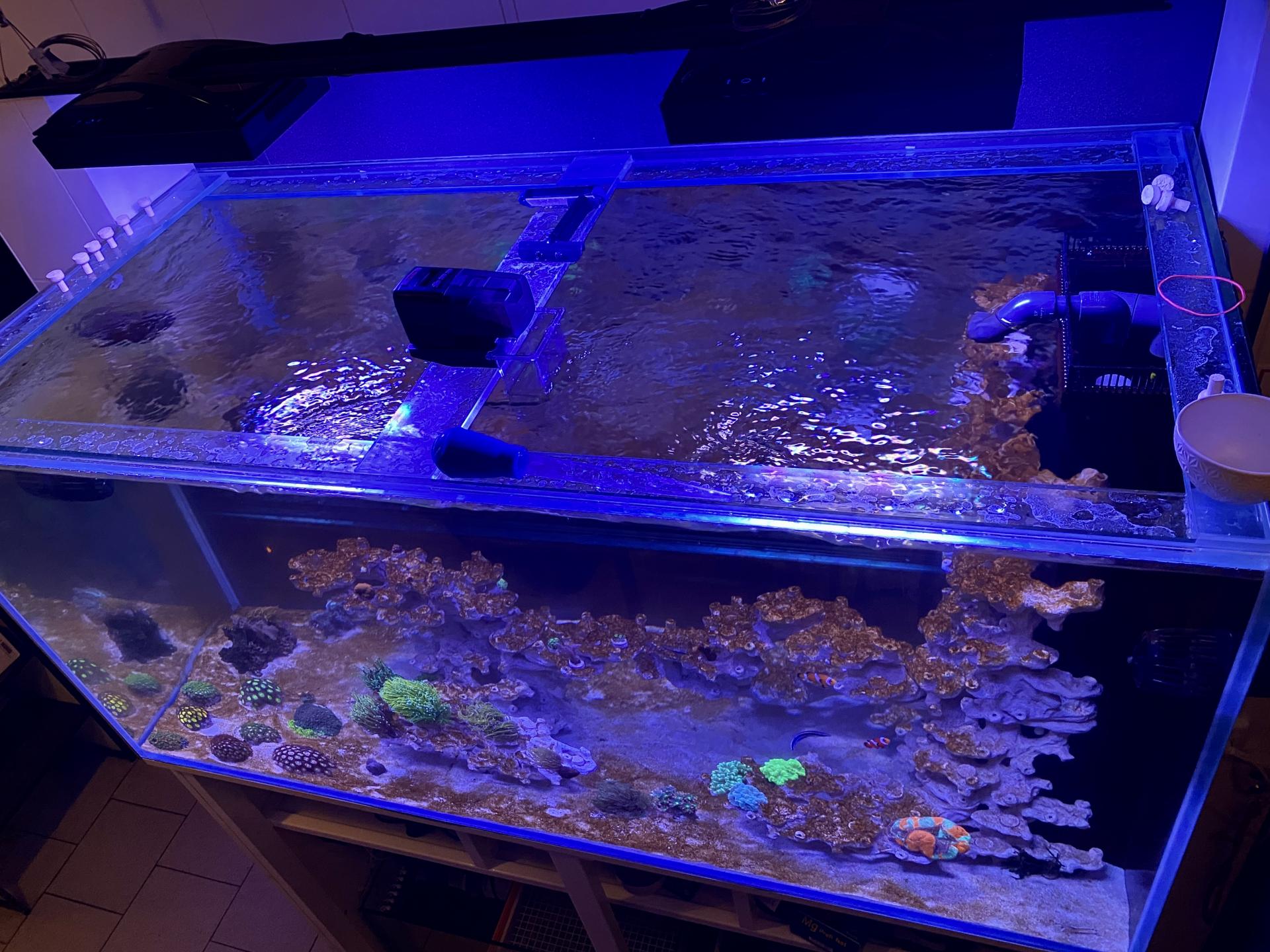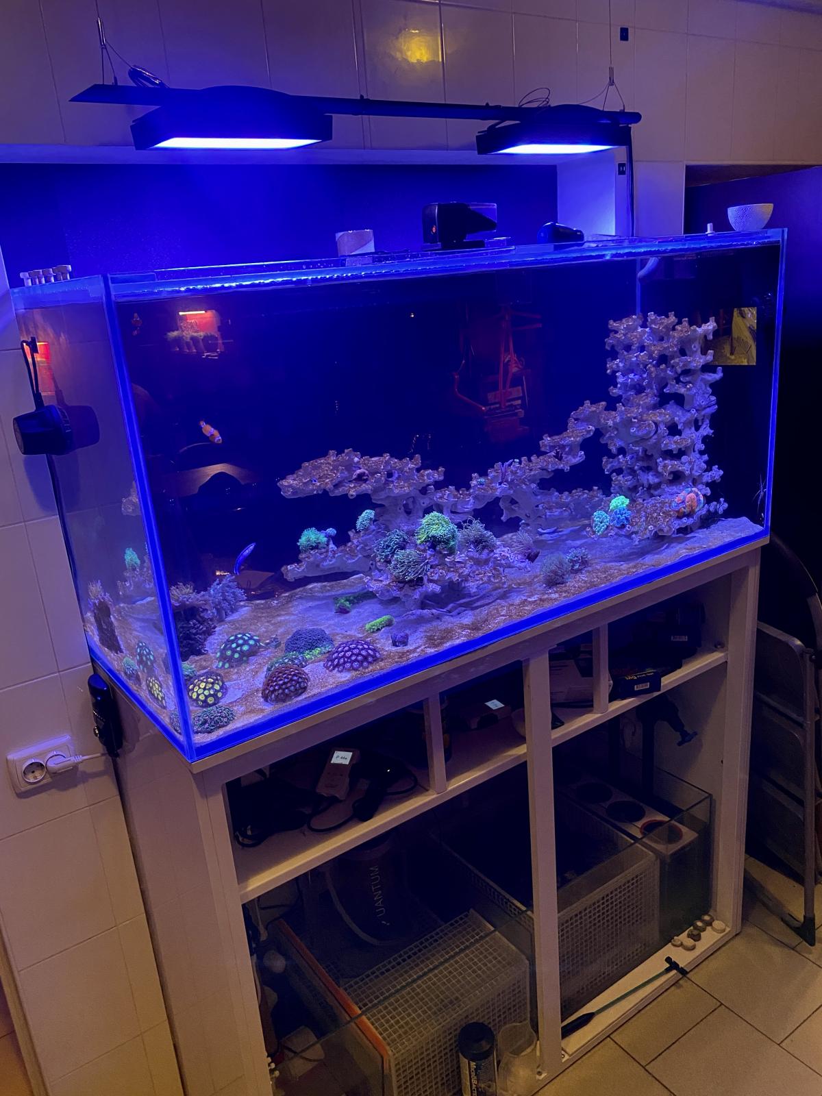У вас хорошая система, хорошее оборудование. Технологически есть всё для того, чтобы риф рос и процветал. Но аквариуму нужно время, чтобы он созрел. Мучить сейчас банку, дёргать химию, заливать что-то одно, чтобы пофиксить другое... Ну такое. Все ж говорят, не торопитесь. Он просто зреет. А пока он не созрел, кораллам может не нравиться что угодно. Да и учитывая, что фильки это не ксюха, и фильки эти уже в банке, остаётся только верить в лучшее. Море — это инертный и плавный процесс. Не гашение соды уксусом, хоп и всё. Любые прыжки, даже в положительном направлении, могут вылиться в негатив. Взять то же резкое снижение фосфатов. Есть большая вероятность того, что потратив кучу денег, залив в банку химии и сбив резко с 0.5 до 0.1, все акры утром будут белыми.