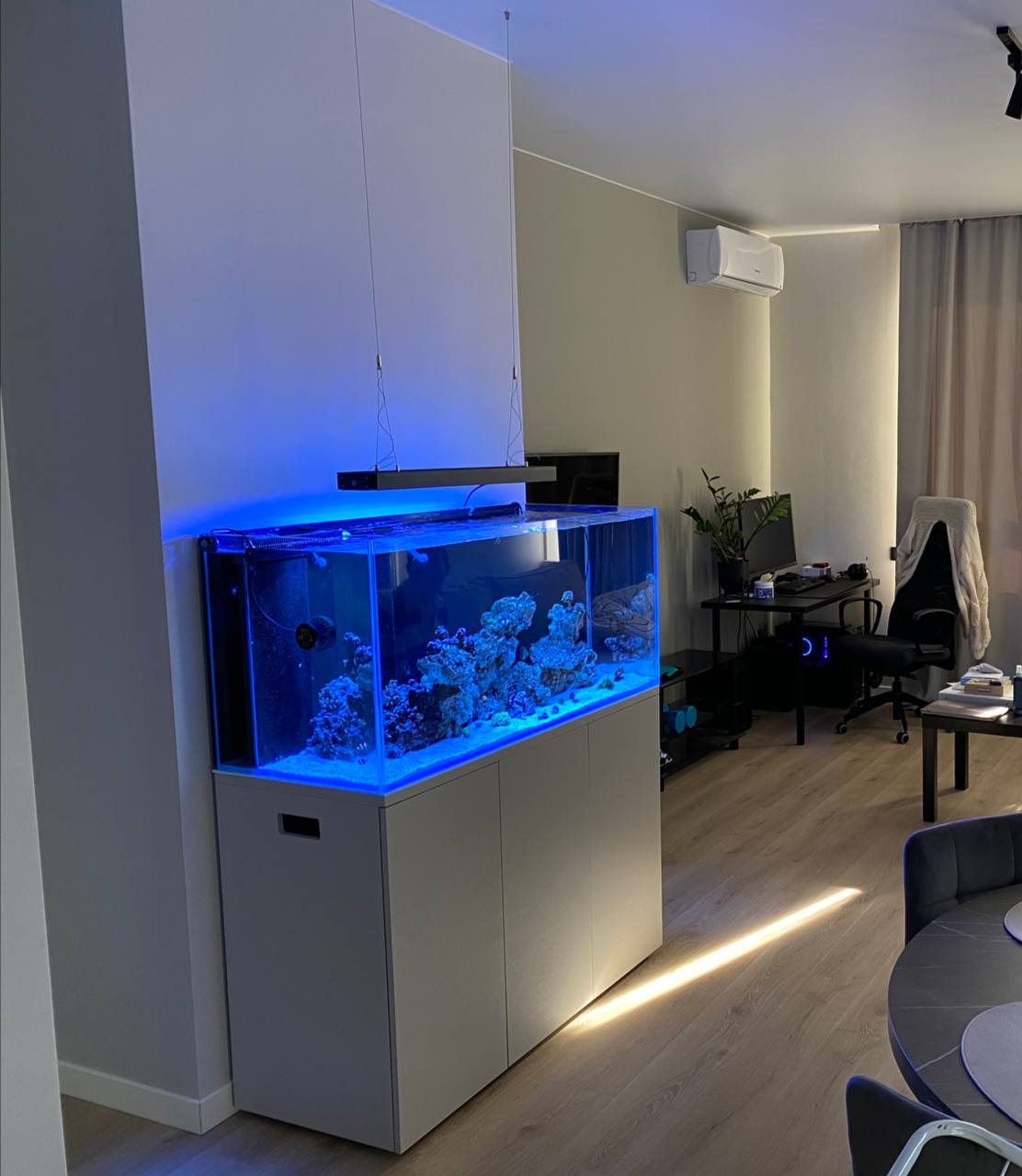 В конечном итоге он предал BEAMS, и повесил над своим аквариумом несколько Philips Coral Care и досветку из прожекторов