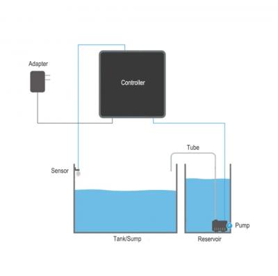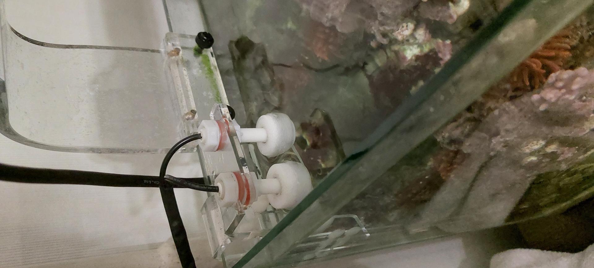 Поплавки закрепляете на край аквариума на планке. Закрепляете на болтиках так. Что бы поплавки были на уровне уровня вашей воды. Тужа же рядом закрепить шланг от помпы. Как только уровень воды будет падать, поплавки начнут двигаться вниз на том стержне на котором они закреплены, и начнется долив воды. Как только уровень воды поднимет поплавки назад -- вода перестанет доливаться. Соответсвенно другой конец шланга закрепить на помпе и кинуть ее в емкость с водой для долива