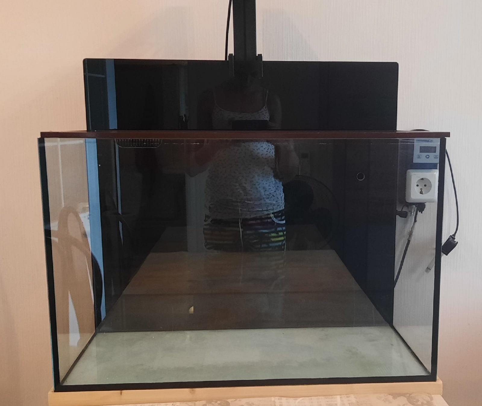 Изготавливалась именно под аквариум. Общие габариты: 70х50х745 см.