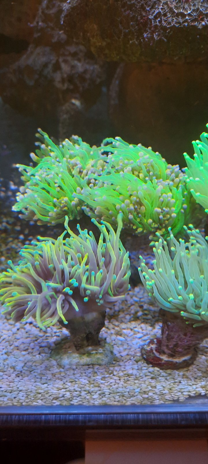 После переселения пошла какаято стагнация. Вроде все нормально но 4 факела и дункан стоят с маленькими щупалками. Уменьшились щупальца как минимум в 2 раза. со всеми остальными кораллами все хорошо.