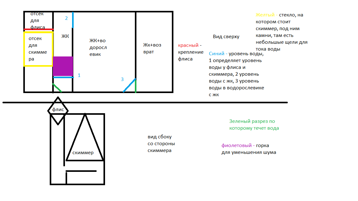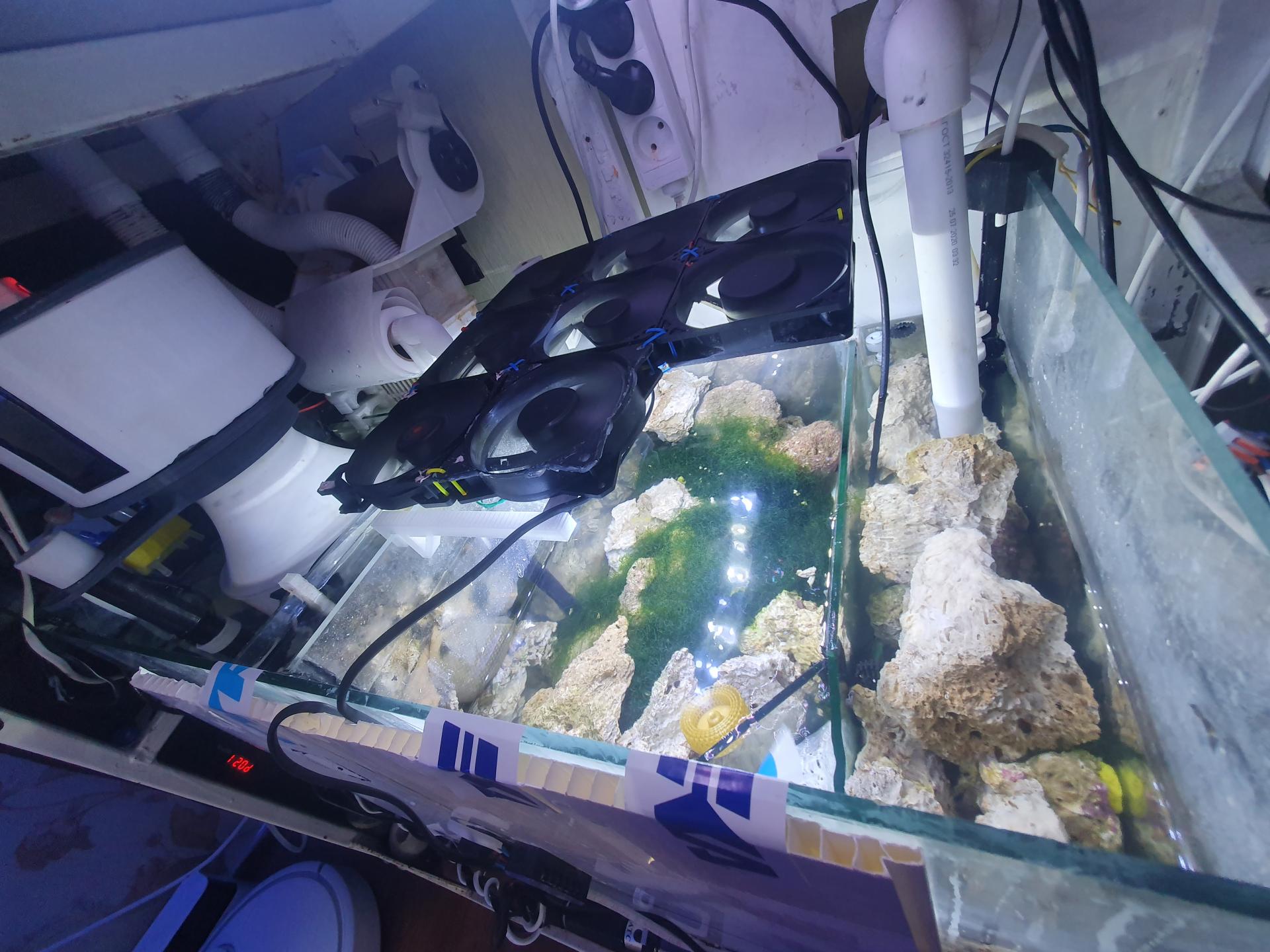 размер 50х80х50 до этого аква была с маленьким неудобным сампом, на новом аквариуме решил разгуляться, в каждом отсеке есть жк
