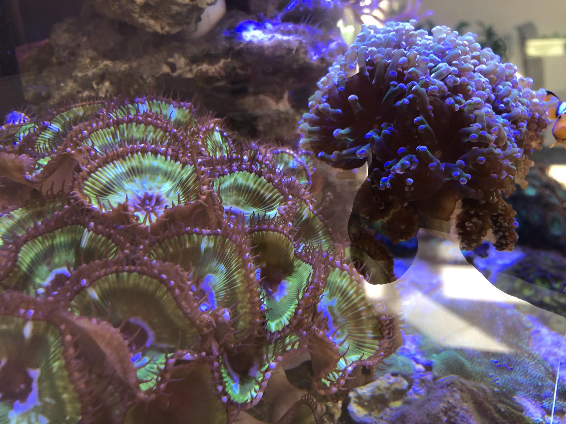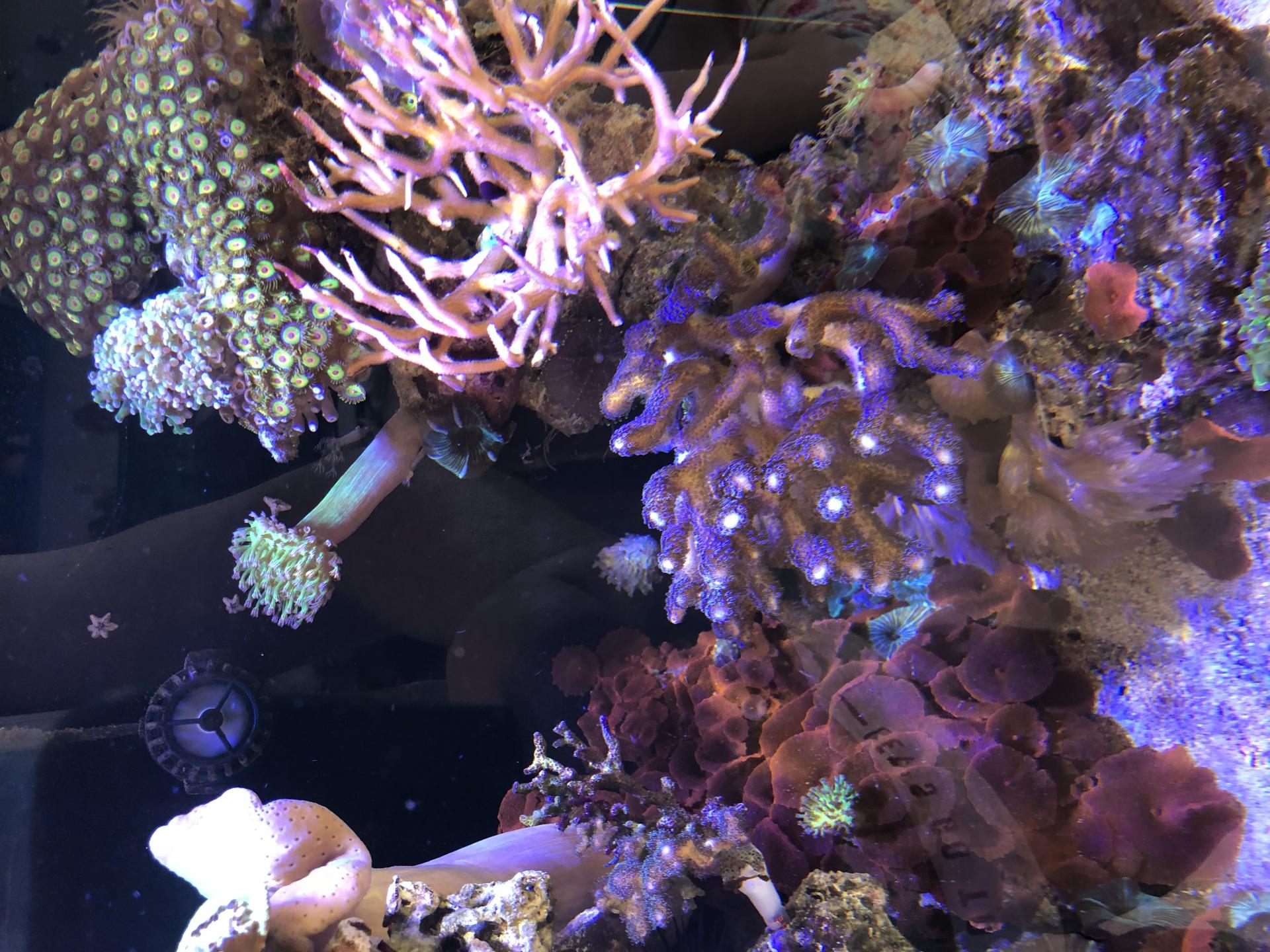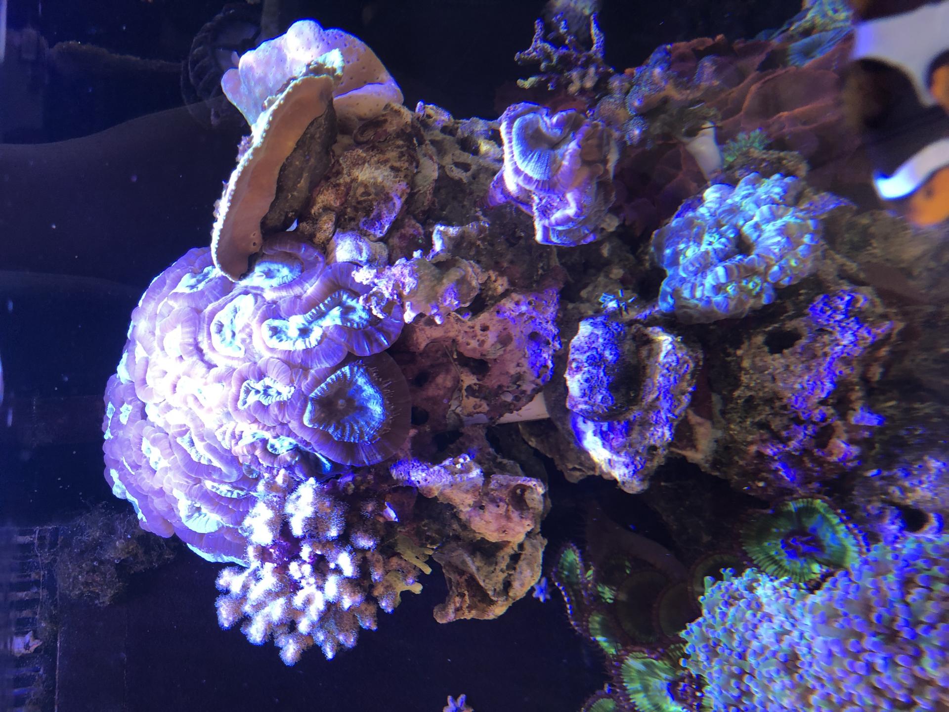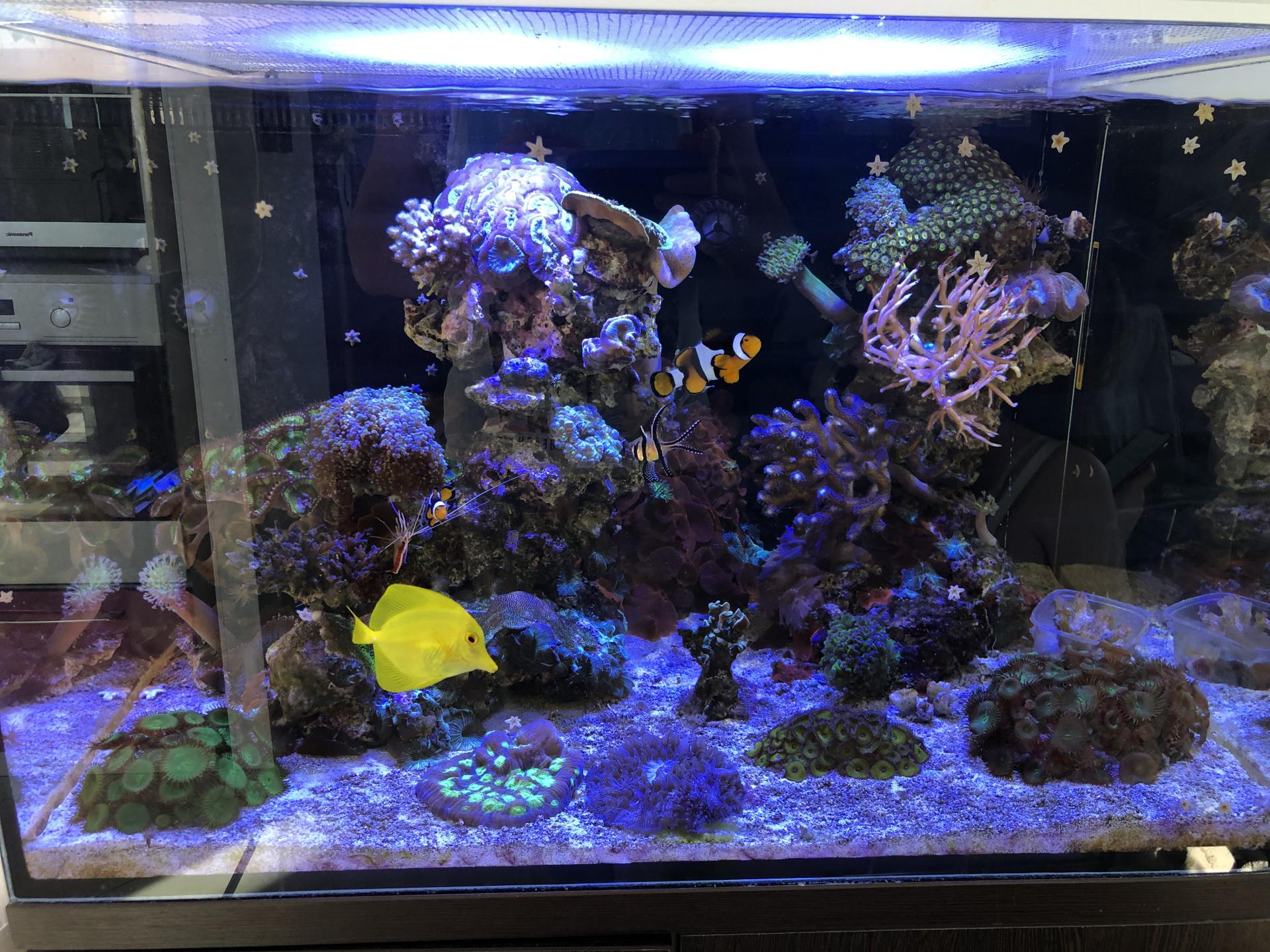 Из живности: 2 клоуна оцелляриса, аппогон, зебросома желтая, креветка тихоокеанский доктор. Кораллы все на фото.