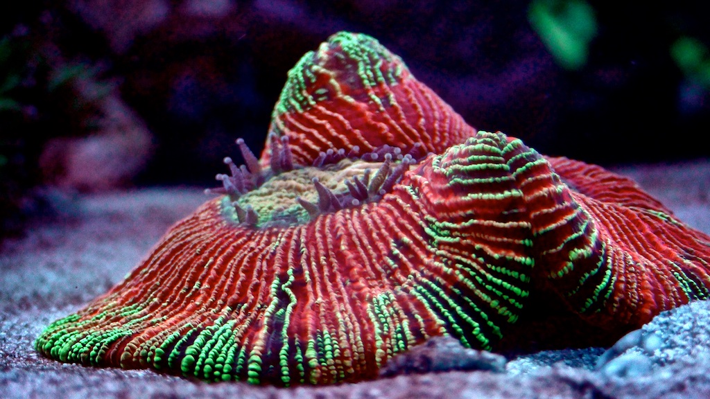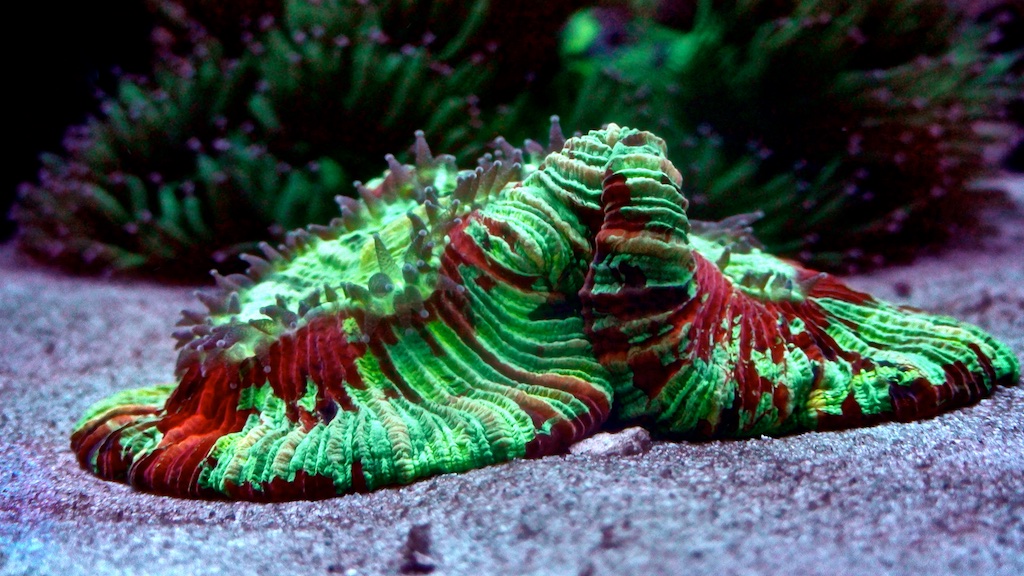 Возьми бутыль 6 литровую, срежь дно и накрывай коралл при кормлении. Раз в неделю, но плотно, ей вполне хватит. Плюс ультра мин порошковый от ФМ или фитопланктон Мариниум, или все остальное в воде растворенное вполне ей усваивается и без колпака из бутылки. Не обязательно кусками мяса кормить совсем.