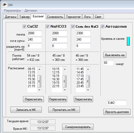 А все решения на таймерах... как бы сказать... они, наверное, тоже вполне рабочие, но нормальный контроллер с компьютерным интерфейсом все ж таки получше будет. Я вообще сторонник того, чтобы все управление было в одном месте (а именно в вашем домашнем компьютере), чтоб не надо было для настройки светильника лезть в светильник и тыкать в, прости господи, сенсорный экран, а для настройки баллинга идти в комнату где расположен самп (а он у меня за стеной, не в тумбе) и нажимать какие-то кнопки. Включив свой компьютер я сразу вижу состояние всех систем, ход температуры, количество дозируемых растворов, расписание светильника... Что-то меня понесло не туда, прошу прощения