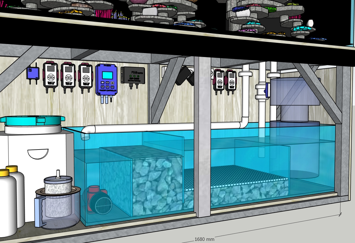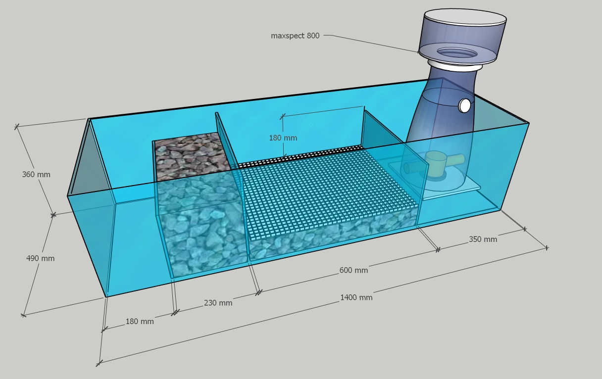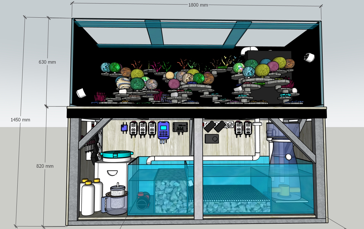 Я пока не начал собирать систему. Сделал только проект. Думаю коротко выложить инфу в этой теме. Вообщем , сама банка 1800*590*630(H) по воде, вместе с сампом, думаю будет 700 литров по воде. В планах переселение всех своих + насо желтоплавничный ,африканский центропиг и мандаринка. Подсадка и пересадка рыбы ,шоковая, одновременная в свеже запущенную систему. Правда сейчас у меня уже будет больше стартовой биологии в наличии.