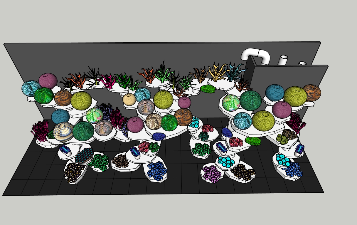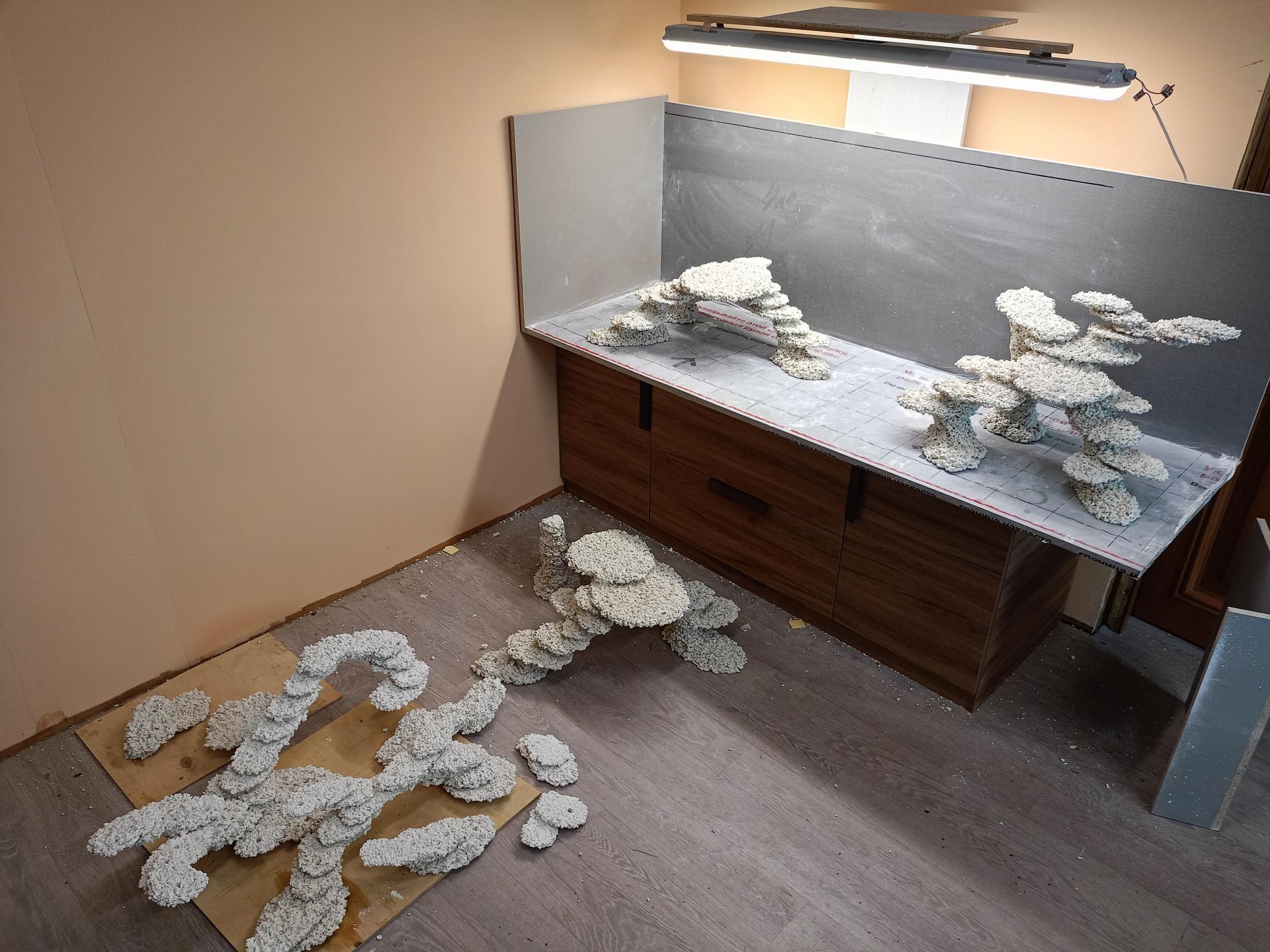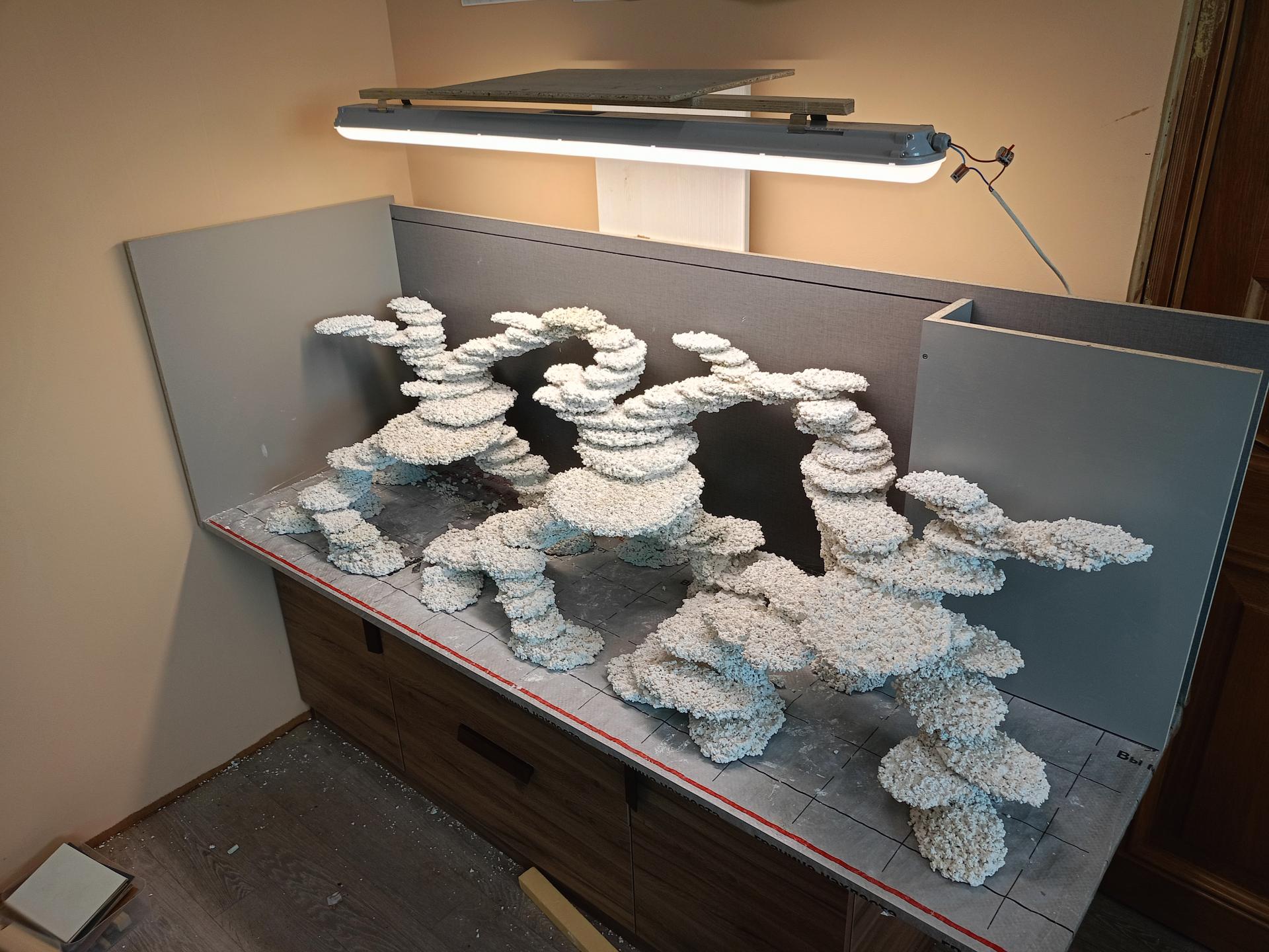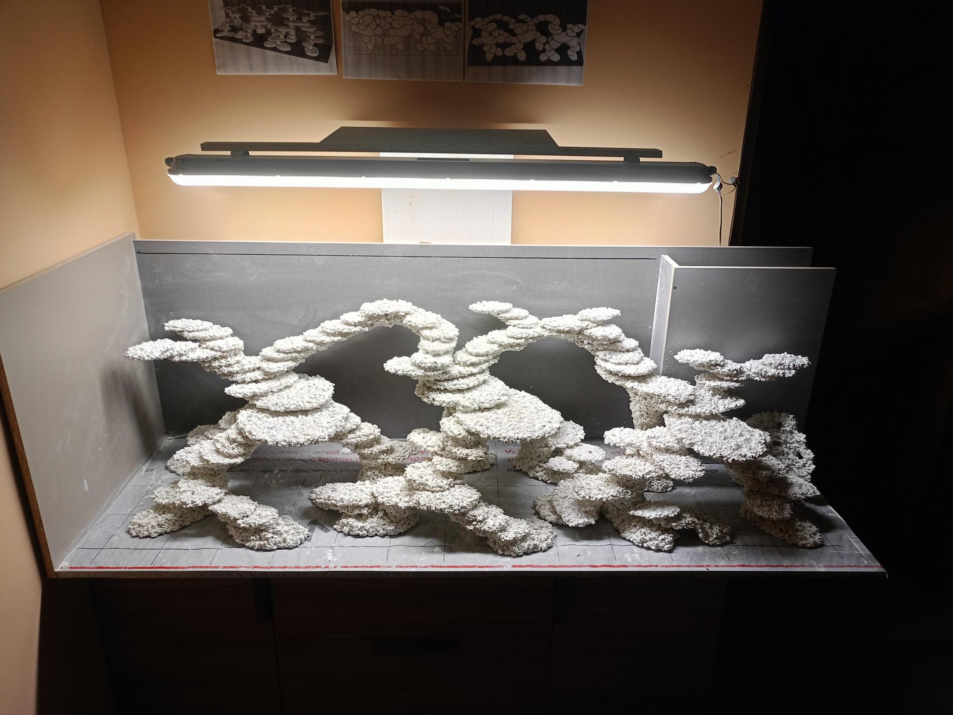 Декорации слепил по проекту , расставил кораллы , весной начну вымачивать. Подойду к этому вопросу более трепетно, учитывая уже наличие большой коралловой базы.
