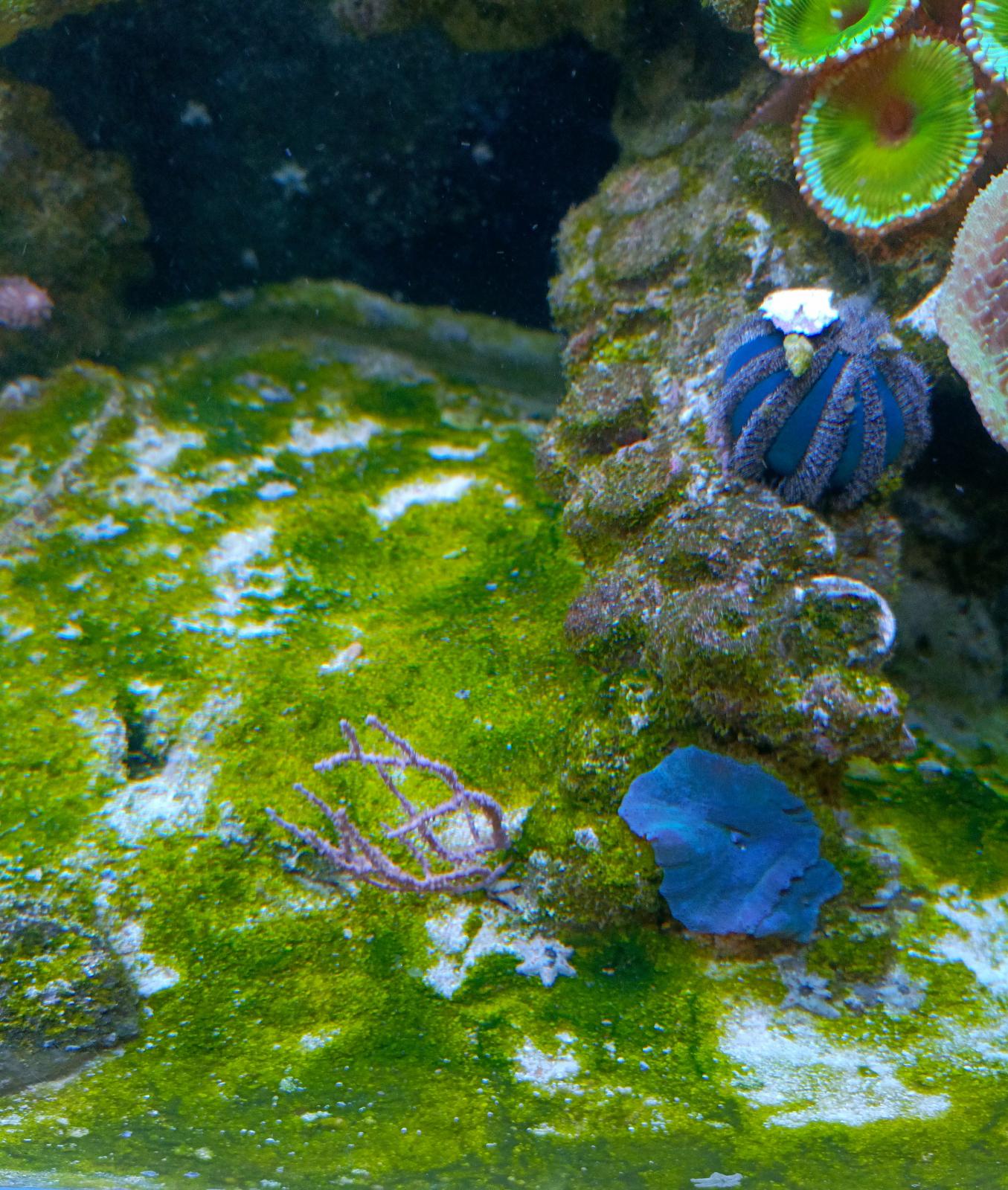 Появился ковёр после двухмесячного дозирования нанохлоропсиса. На ночь исчезают.