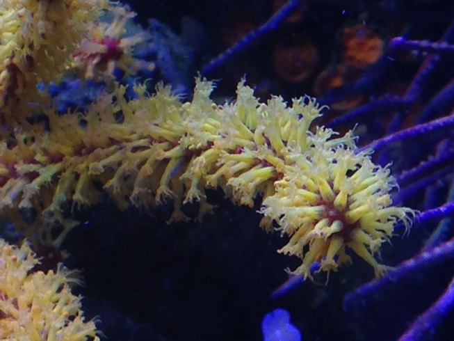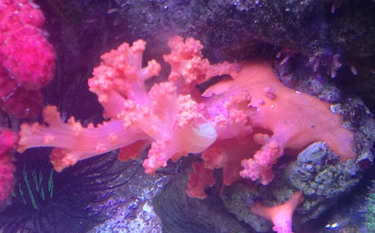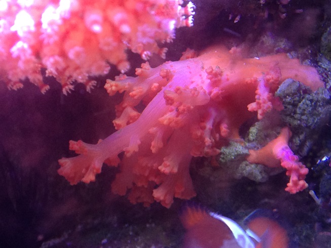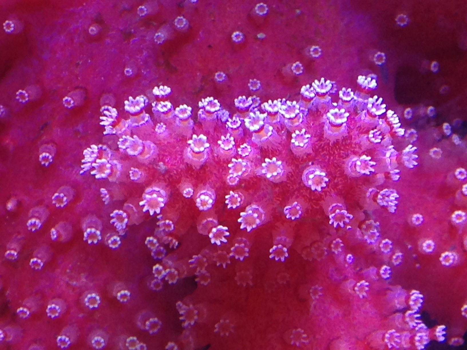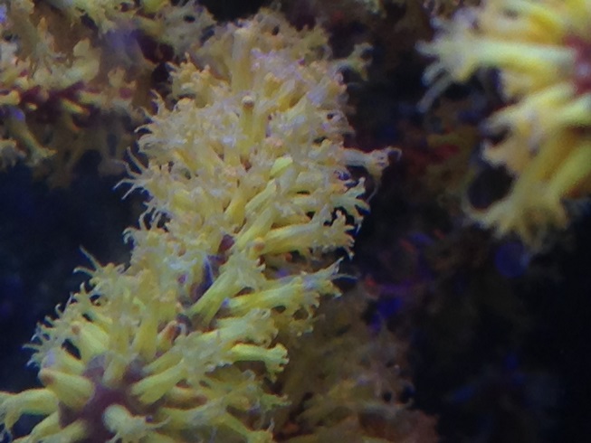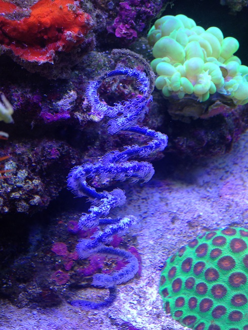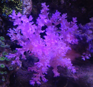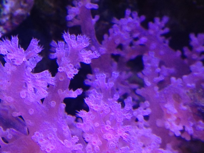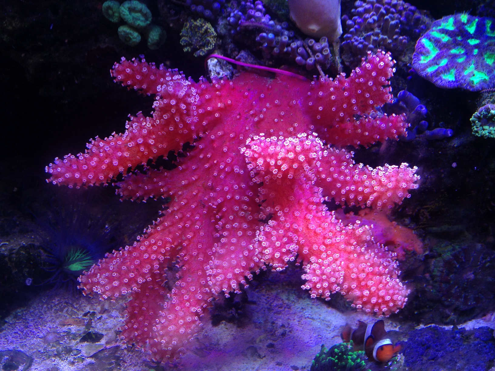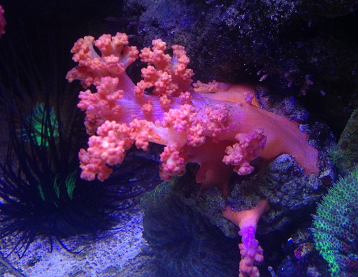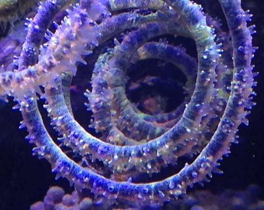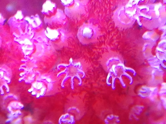 А насчёт частоты кормления я не уверен, что мелкий корм, который у меня дозируется круглосуточно, вносит заметный вклад в её питание. Она скорее как тубастреи предпочитает одну, но щедрую кормёжку. Проблема лишь раскормить её, пока щупальца еду не начнут клеить. Я полностью выключал течение и буквально покрывал её слоем мороженой артемии. Большая часть потом разлеталась, но так ей всё же доставалось довольно много и она скоро начала отращивать дополнительные полипы, пока вся ветка под ними не скрылась.
