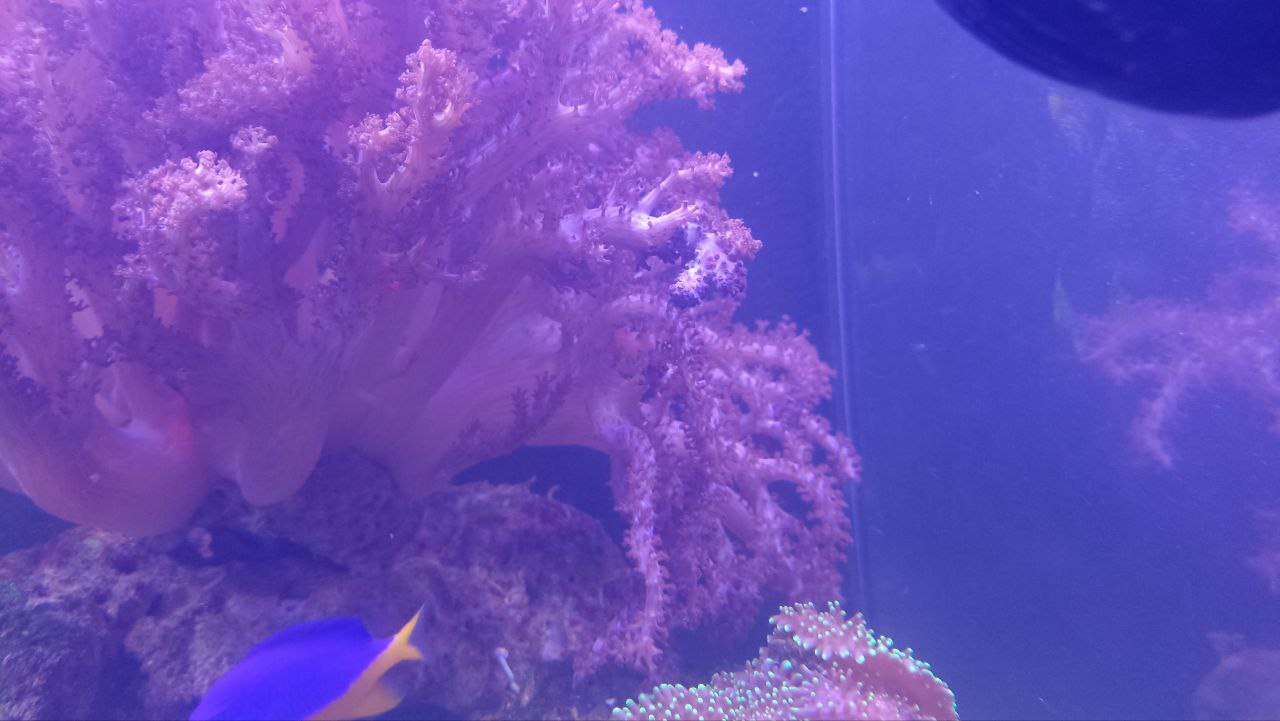 Я ориентировался на рыбник+мягкота. В аквариуме живут множество мягких кораллов: ксения, бриареум, капнелла, кликсум, родактисы, дискоактинии, саркофитоны, синулярии, актинии квадриколор и т. п.... Из рыб в нем живут оливковый хирург, полосатый хируруг, хепатус, пара клоунов себа, пара желтобрюхих хризиптер, сапфирная хризиптера, губан-бекас, желтая лиса, центропиг биспиноза, центропиг гибрид эйбла и вролики, пара хромисов. В сампе сидит голубой вельвет, потому что эта скотинка кушала кораллы. Других беспозвоночных вроде креветок и улиток нет, ибо их истребляет губан-бекас.