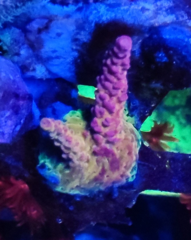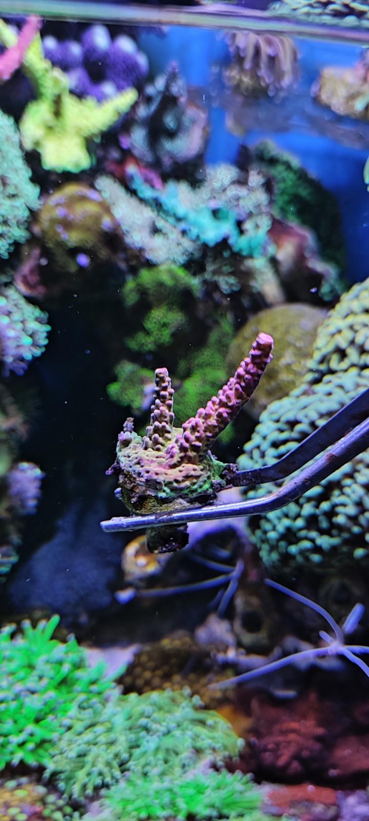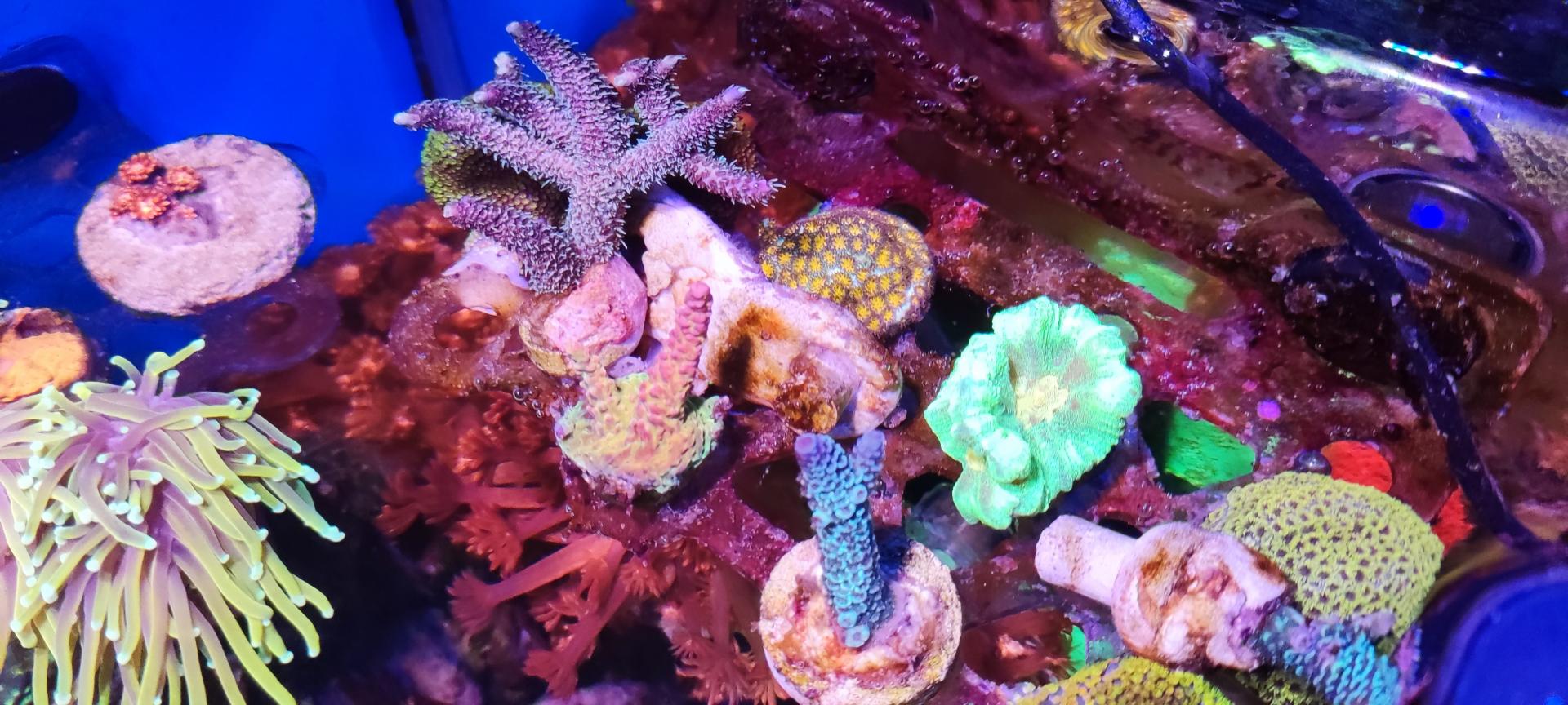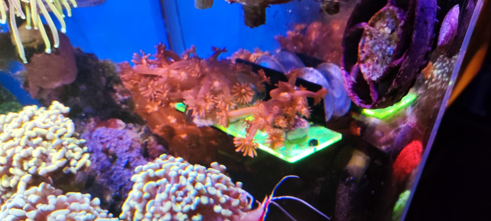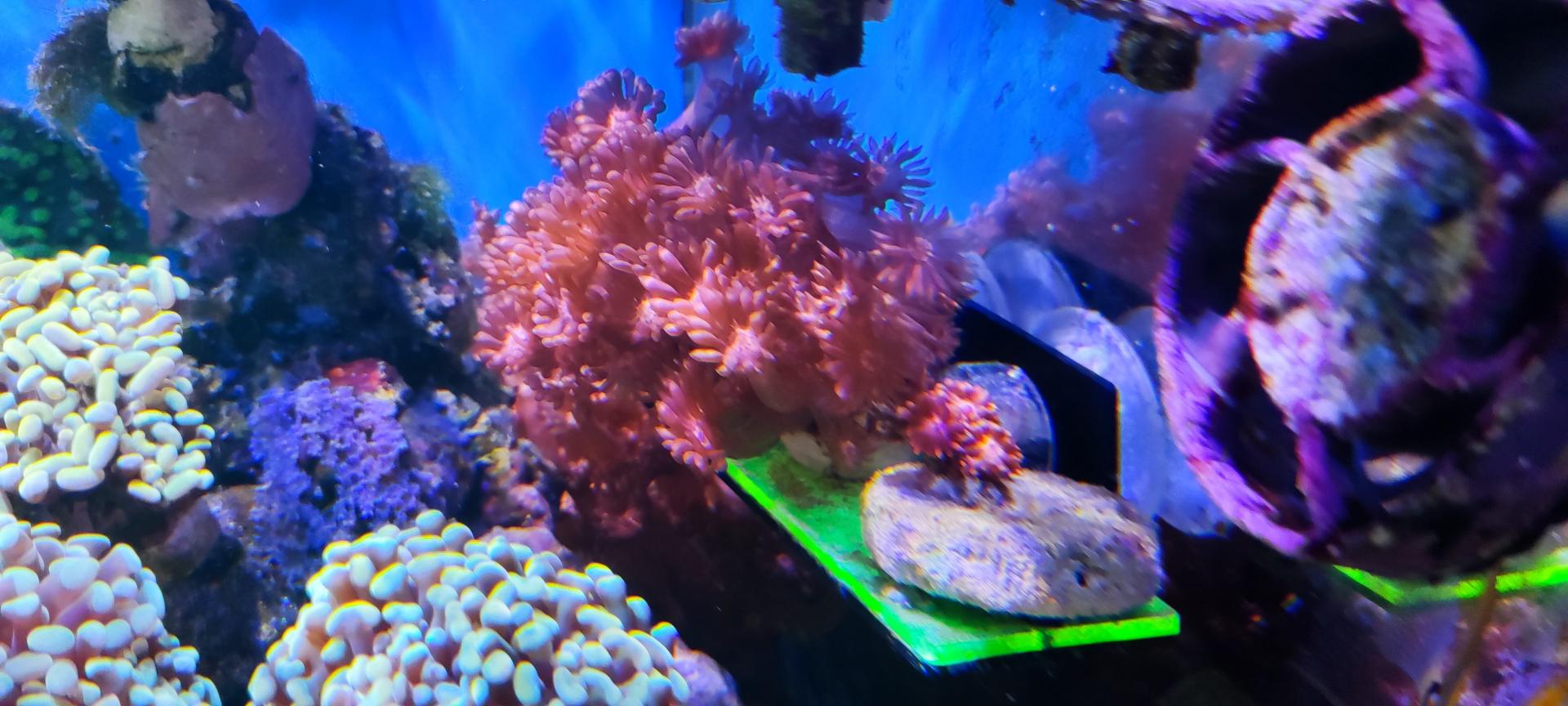 9. Гониопора бордовая, очень длинные полипы. Есть два фрага - 1500 (БРОНЬ) и 2000 (БРОНЬ). Сфотографировать нормально тяжело, стоят не удобно и если тревожишь - сдуваются. Как смог: ПРОДАНЫ