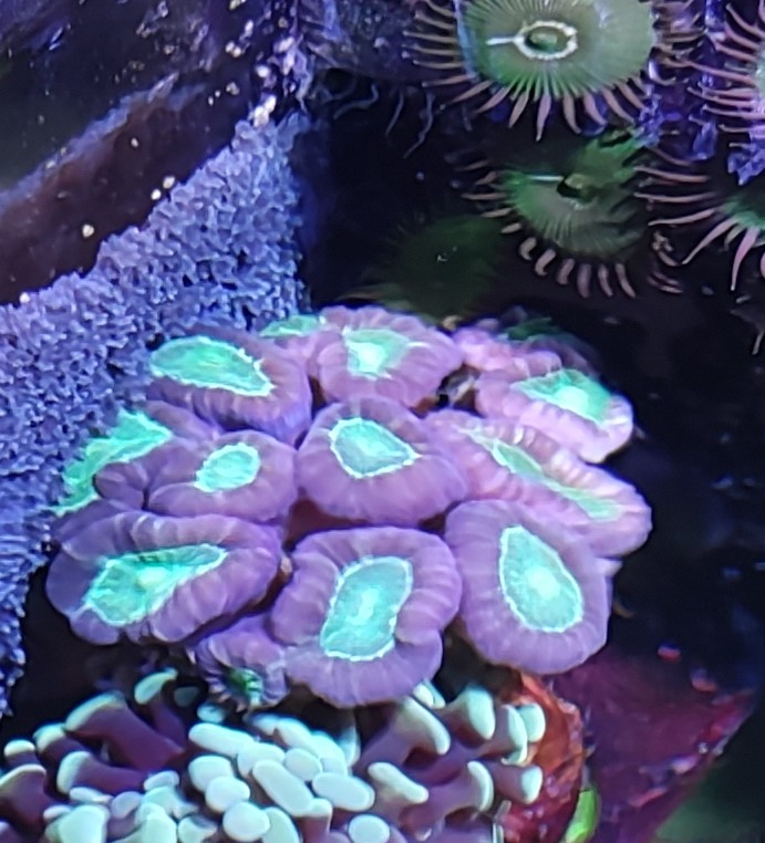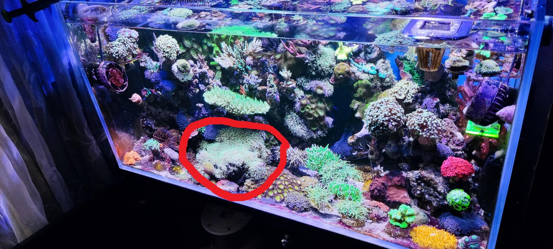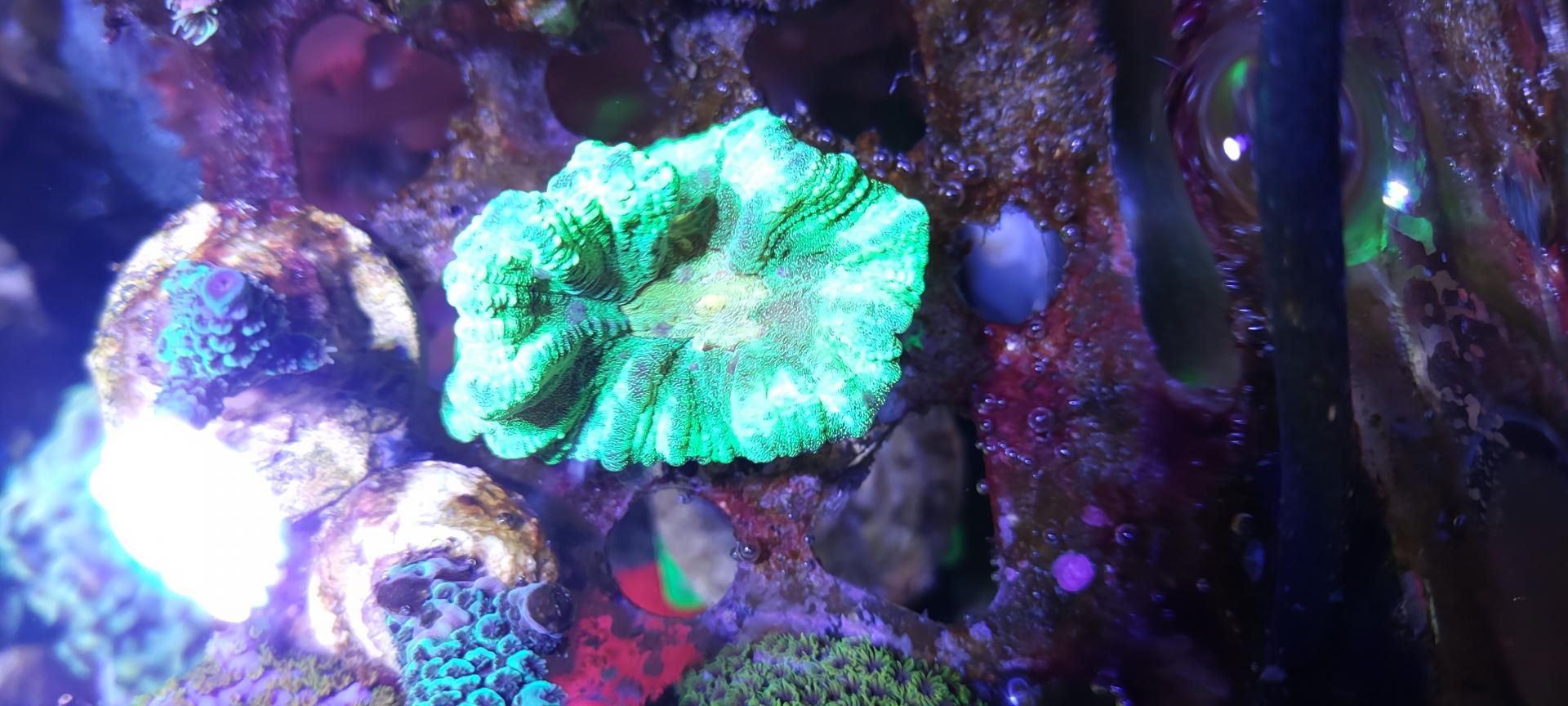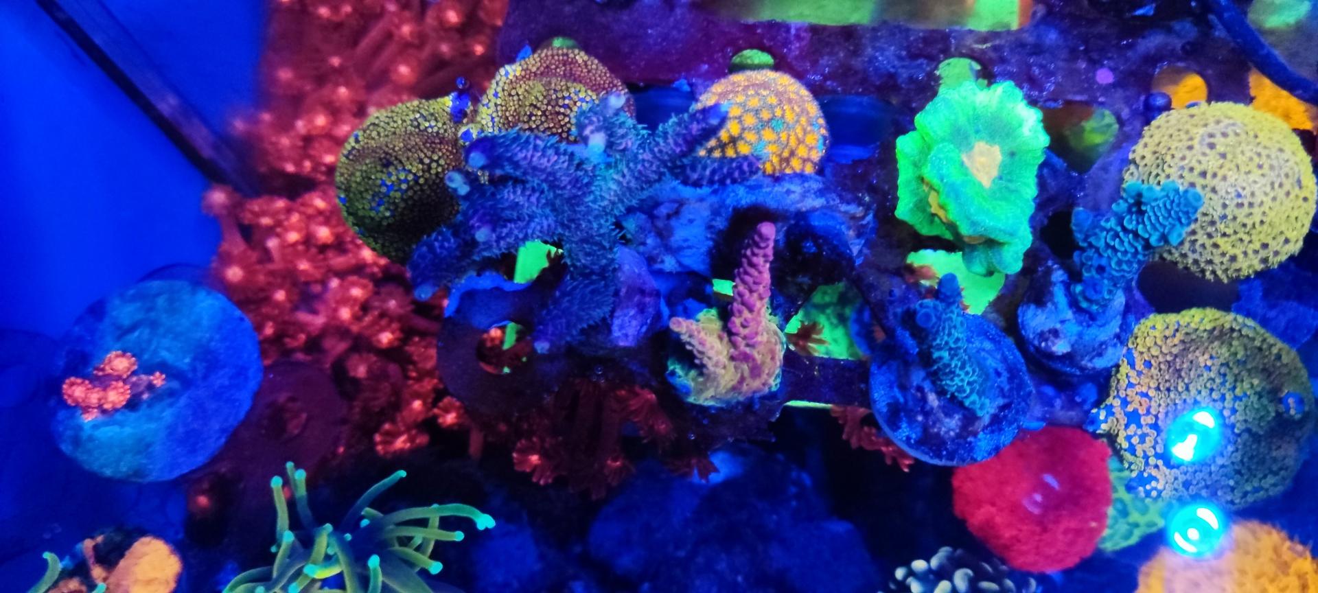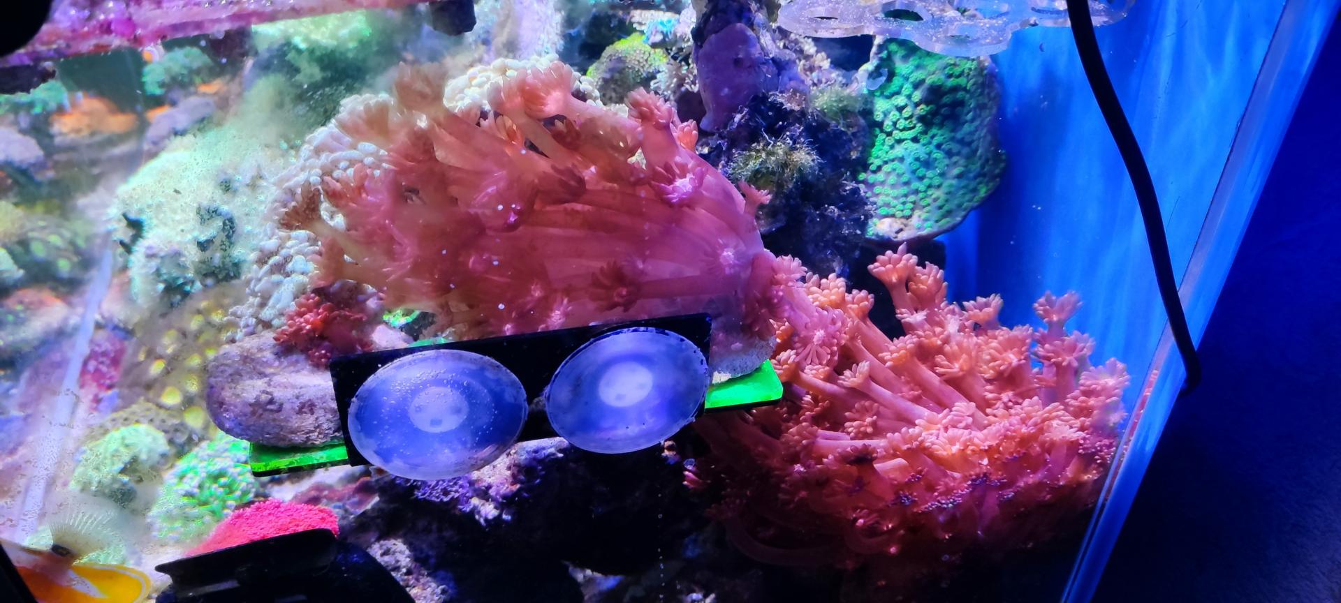 9. Гониопора бордовая, очень длинные полипы. Есть два фрага - 1500 (БРОНЬ) и 2000 (БРОНЬ). Сфотографировать нормально тяжело, стоят не удобно и если тревожишь - сдуваются. Как смог: ПРОДАНЫ