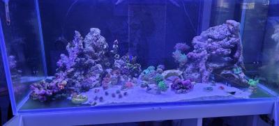 В большом аквариуме фосфаты и нитраты около нулевые, но вроде лпс и мягкие чувствуют себя нормально. Начал проседать кн. Подбираю дозу афр. Докупила камней немного в арчер фиш. Камни так и не склеяла и не скрутила, лежат горками. Надеюсь вдохновение когда-то меня посетит. Учитывая наличие кучи зоопланктона, купила пару мандаринок. Попав в аквариум сразу начали есть букашек, но самец худоват. Думаю, может артемии живой для них вывести.