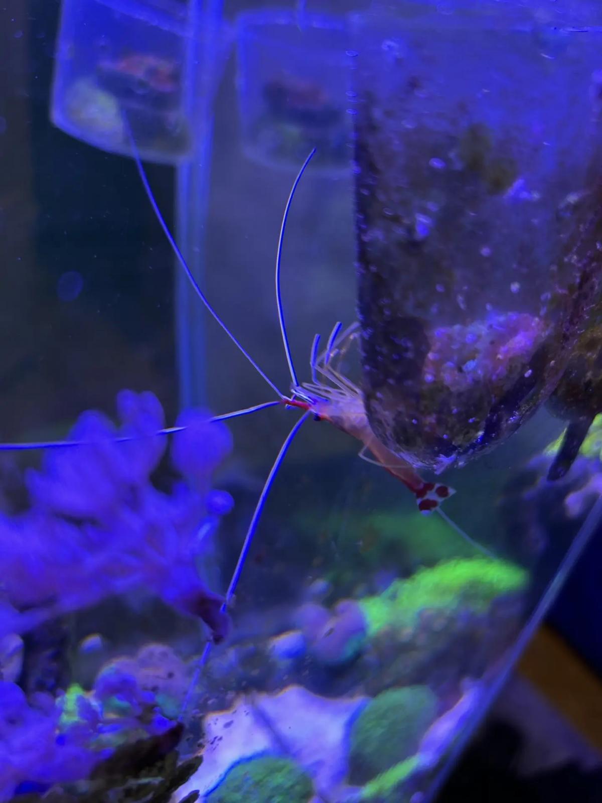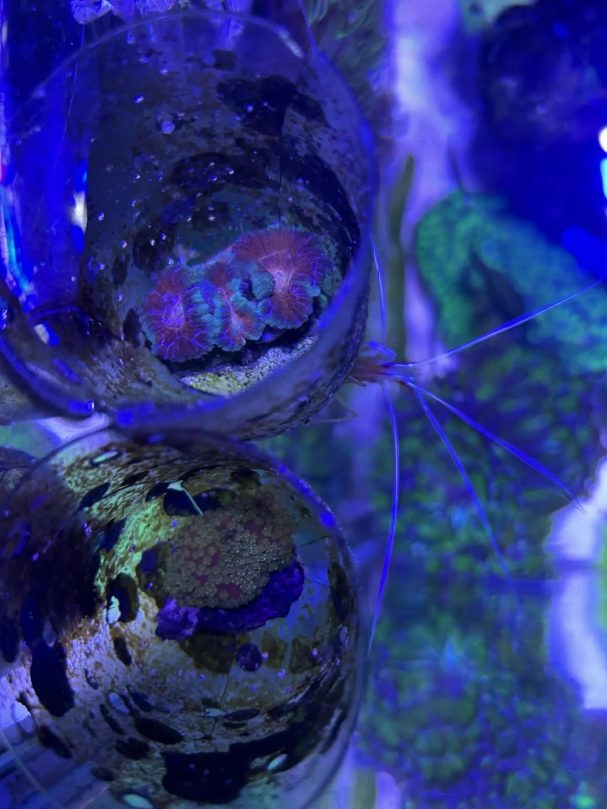 Сейчас так. Стабильно, без потерь и изменений. Фавитес пока что в фильтре. Предыдущие проблемы с ним списываю на скачки kh. Сейчас с карбанаткой стабильно. Веерный червь сбросил один из двух вееров, но за две недели он его восстановил, хот и меньше размером. Собачка старательно избегала фотосессии, хризипера напротив, лезла почти в каждый кадр.