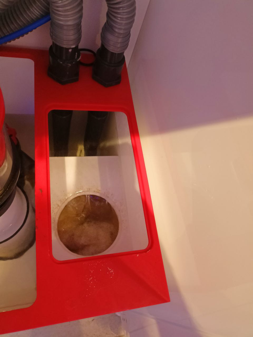 Удалось добиться хорошего результата по переливу, все тихо. Но есть одно но. В сампе есть отсек с фильтром носок. Схематично отрисовал схему сампа.