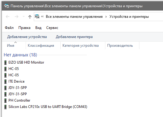 2. Втыкаем в USB компа, смотрим номер ком порта, который был присвоен windows переходнику USB to UART (в панели управления -> устройства и принтеры, на скриншоте у меня COM43) - я не помню надо ли было ставить для него драйвера, кажется автоматом встают, разберетесь.