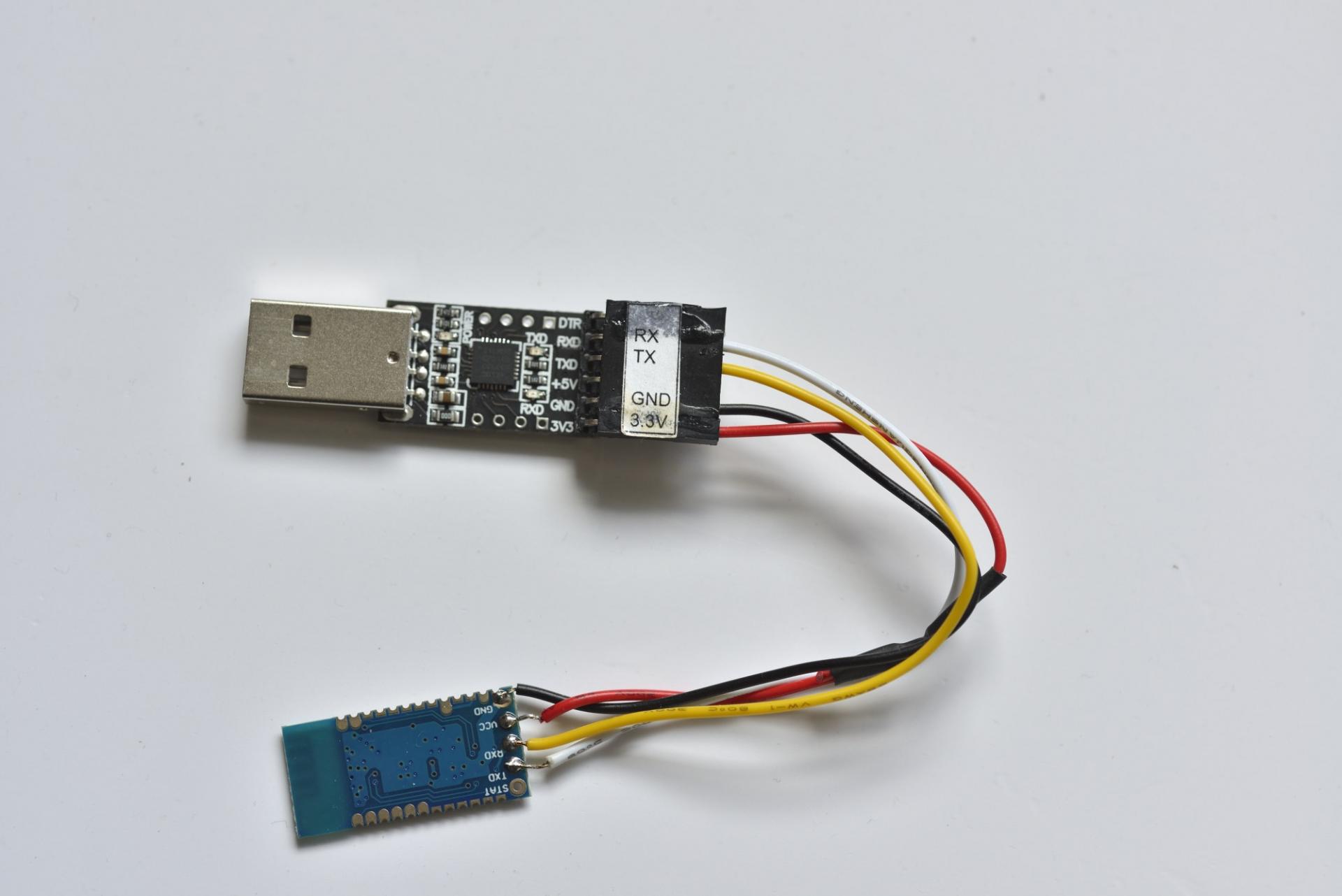 1. Подключаем блютуску к любому USB to UART переходнику (должен быть у каждого электронщика, если нет то поиск по фразе USB to UART выдает кучу предложений в районе 100 рублей).
