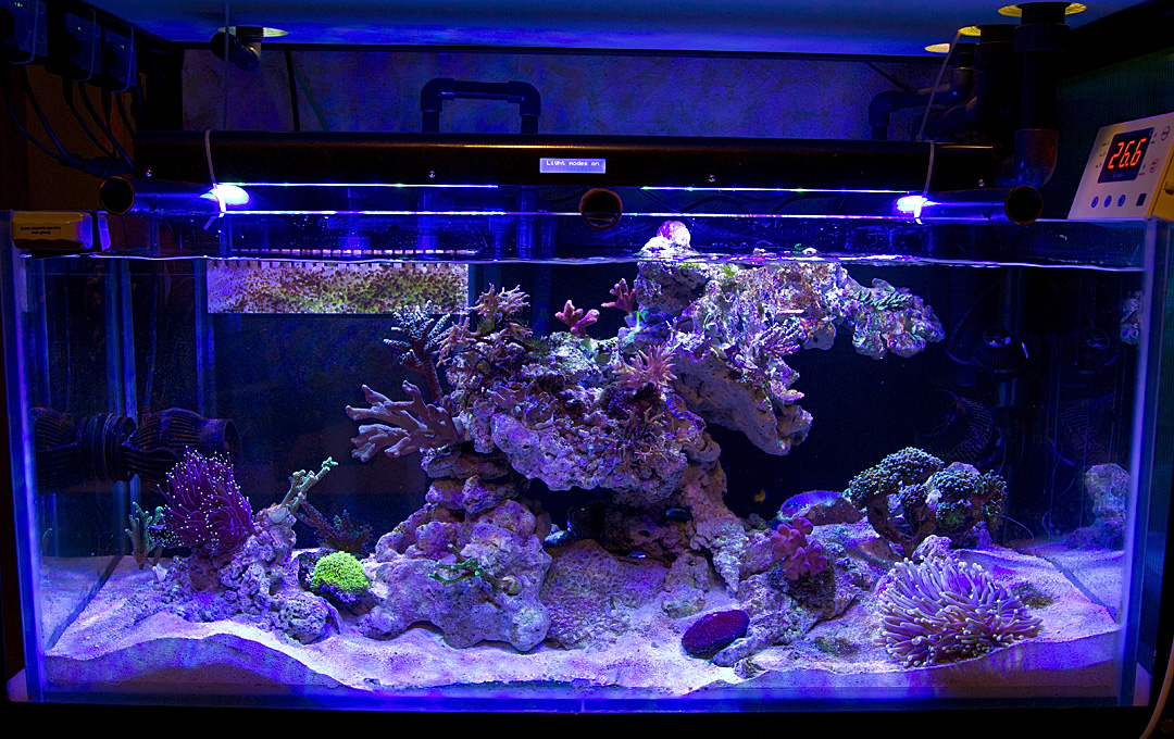 Перемешивающие помпы jebao WP40- 3шт, WP10- 1 шт (кстати, помпами очень-очень доволен. И не шумят, и функционал богатый, и стоят демократично. Правда, клиентам ставить не стал бы из за страшного китайского дизайна, но это лирика, да).
