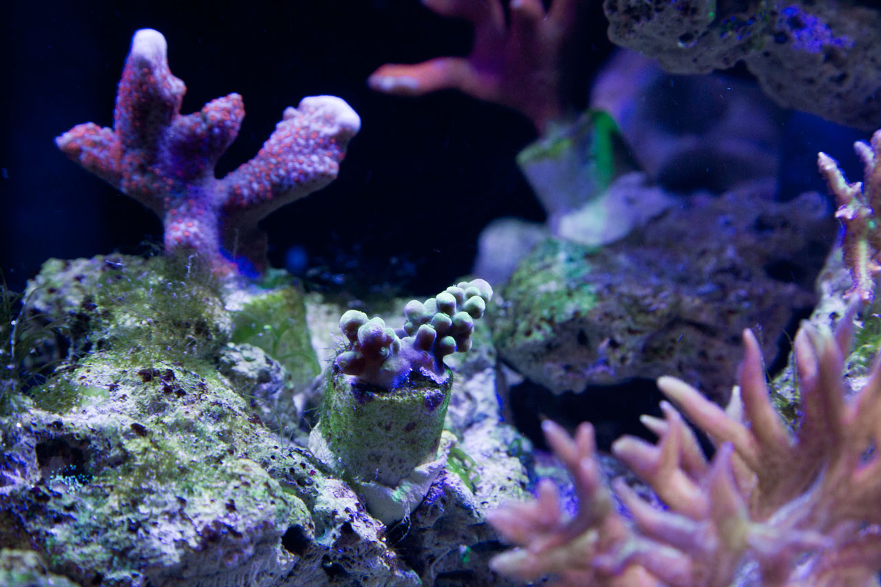 Несколько акропор ( с идентификацией я пардон), листовые монтипоры, поциллопра, стилофора, сериатопоры хистрикс и календрум, фунгия, гелиофунгия, эуфилии и клавулярия. А, и еще галаксея здоровенная (бедная, уже два раза переезжала, никому не нужна?).