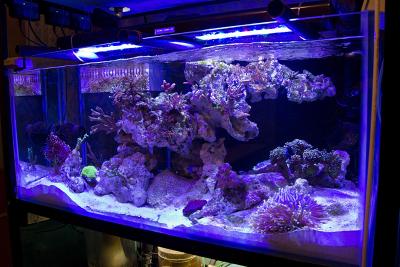 Креветка боксер, королевский псевдохромис, томатные клоуны и задира - параглифидодон)) Хочу еще досадить желтую рыбку из мультика, а то бриопсис потом не выведу, но стоит зараза дорого и вырастает большой. Придется, наверное, их время от времени менять.